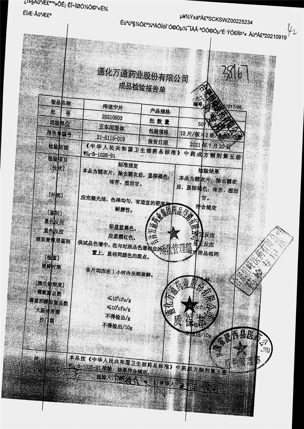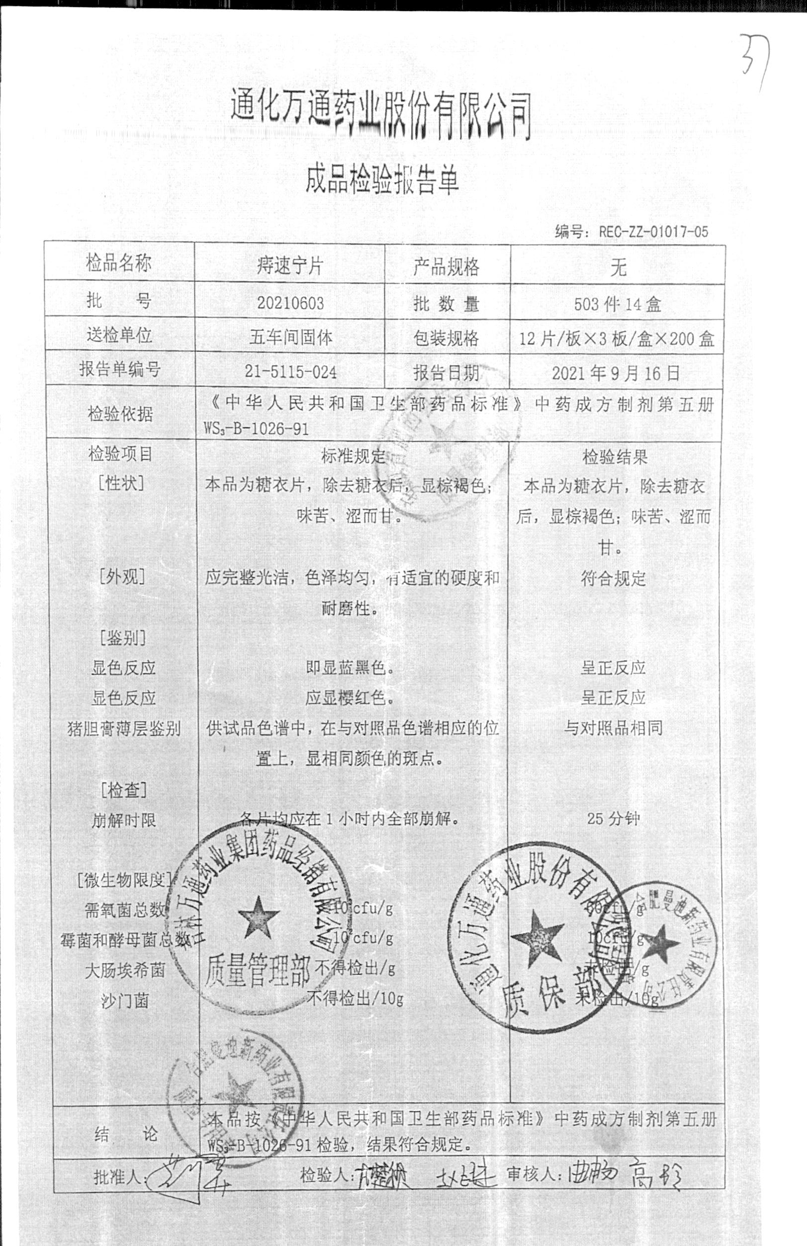 | 痔速宁片 | 12*3 | 20210503 | 查看详情 |