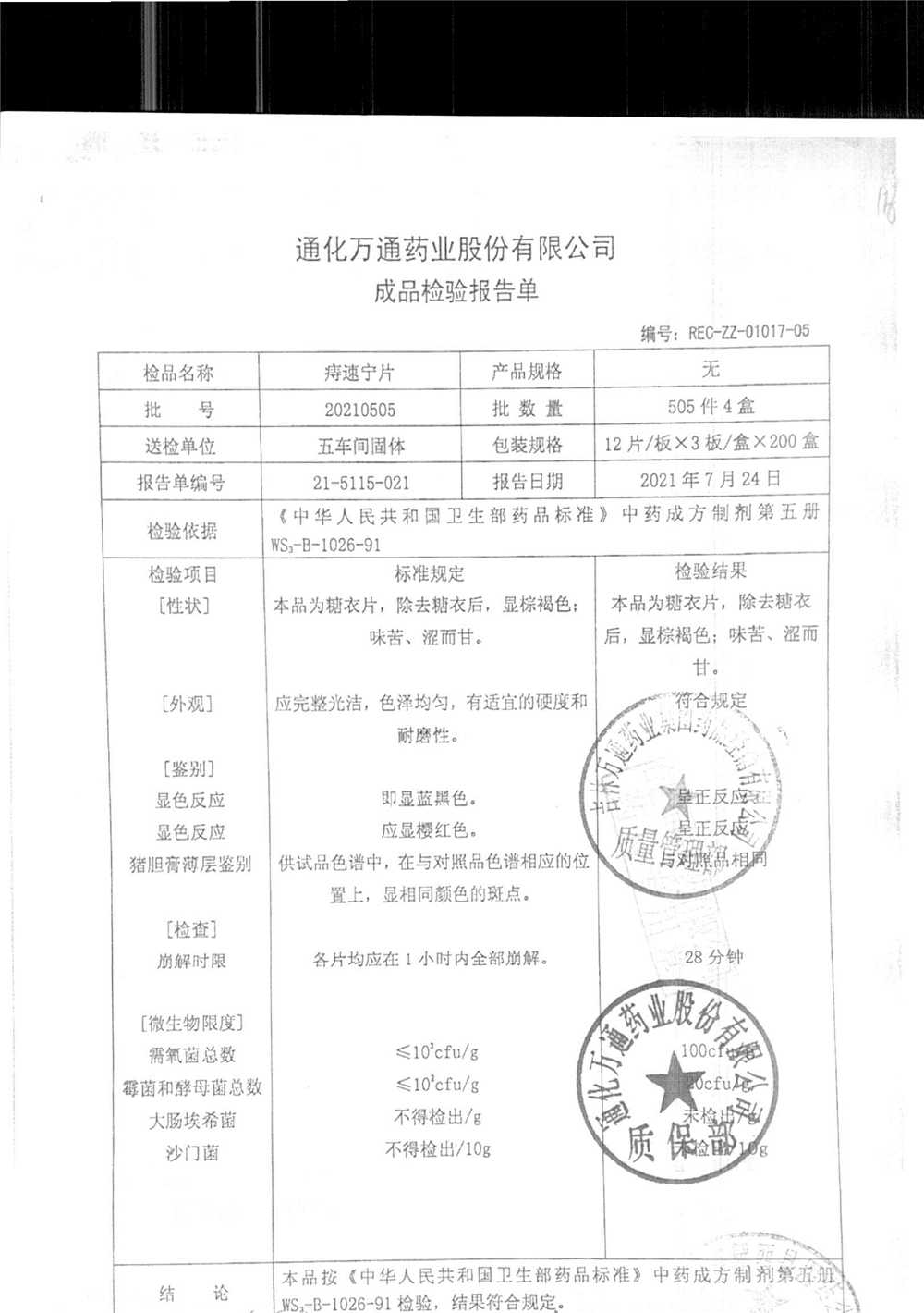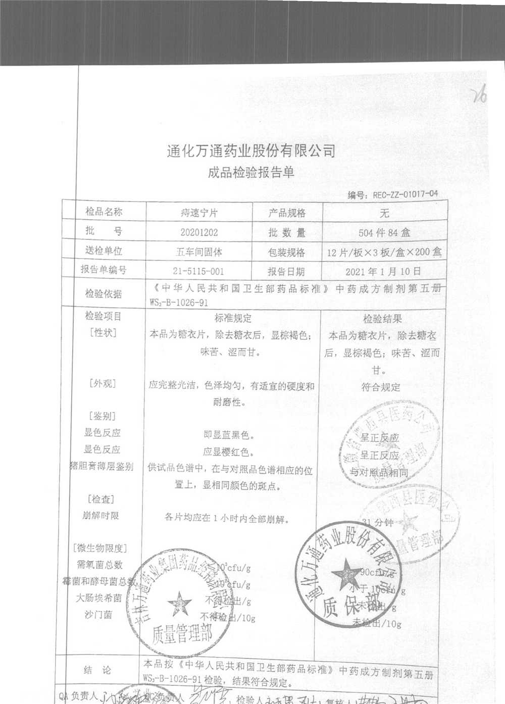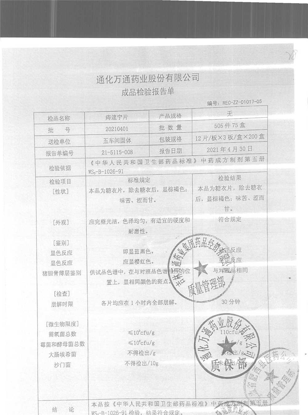 | 痔速宁片 | 12*3 | 20210501 | 查看详情 |
