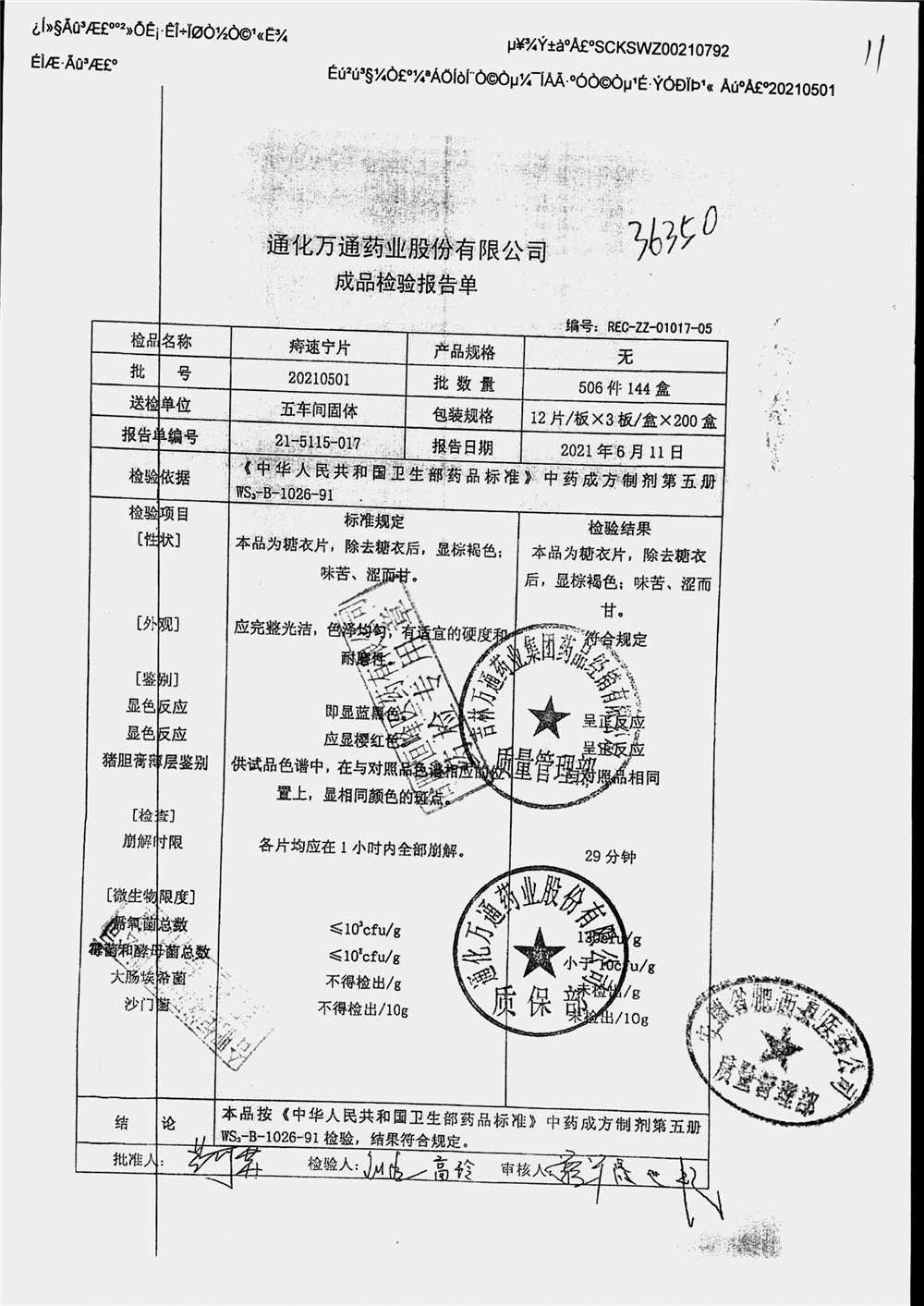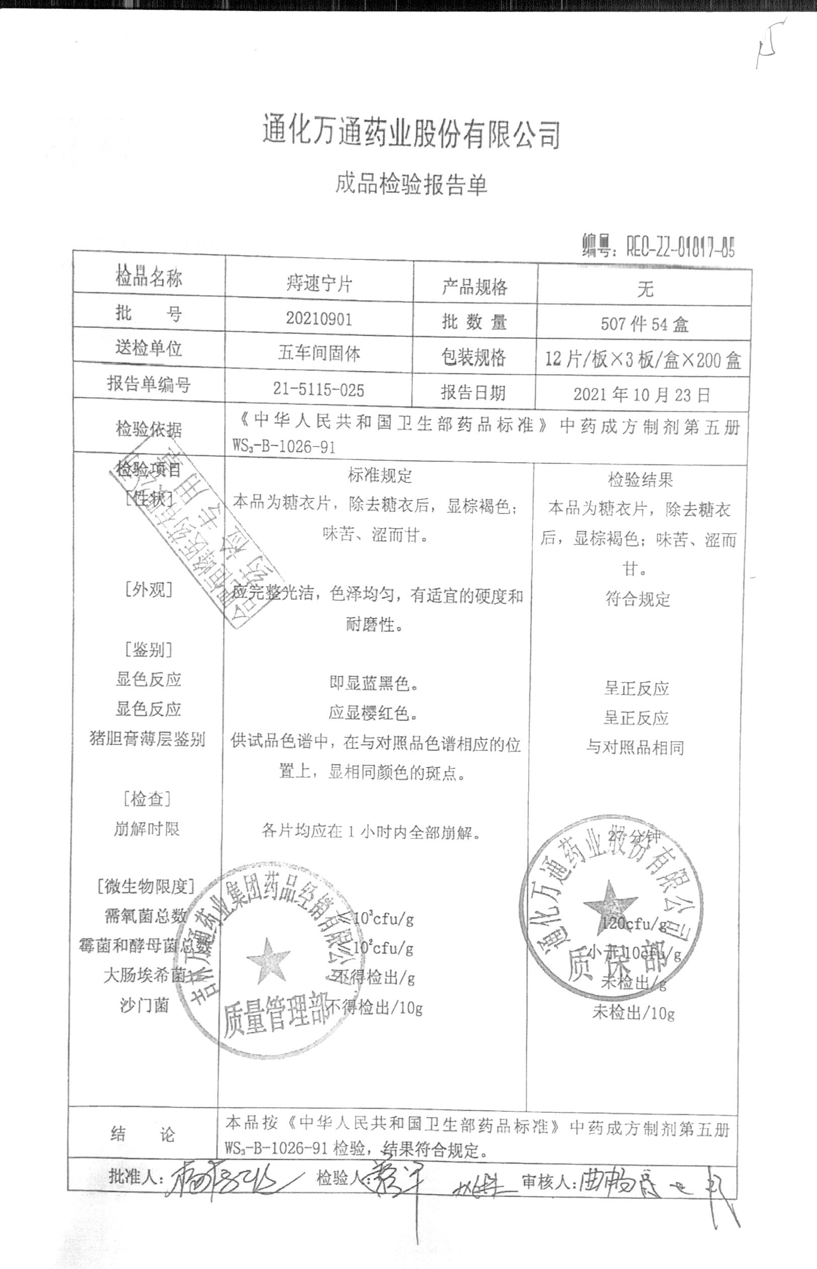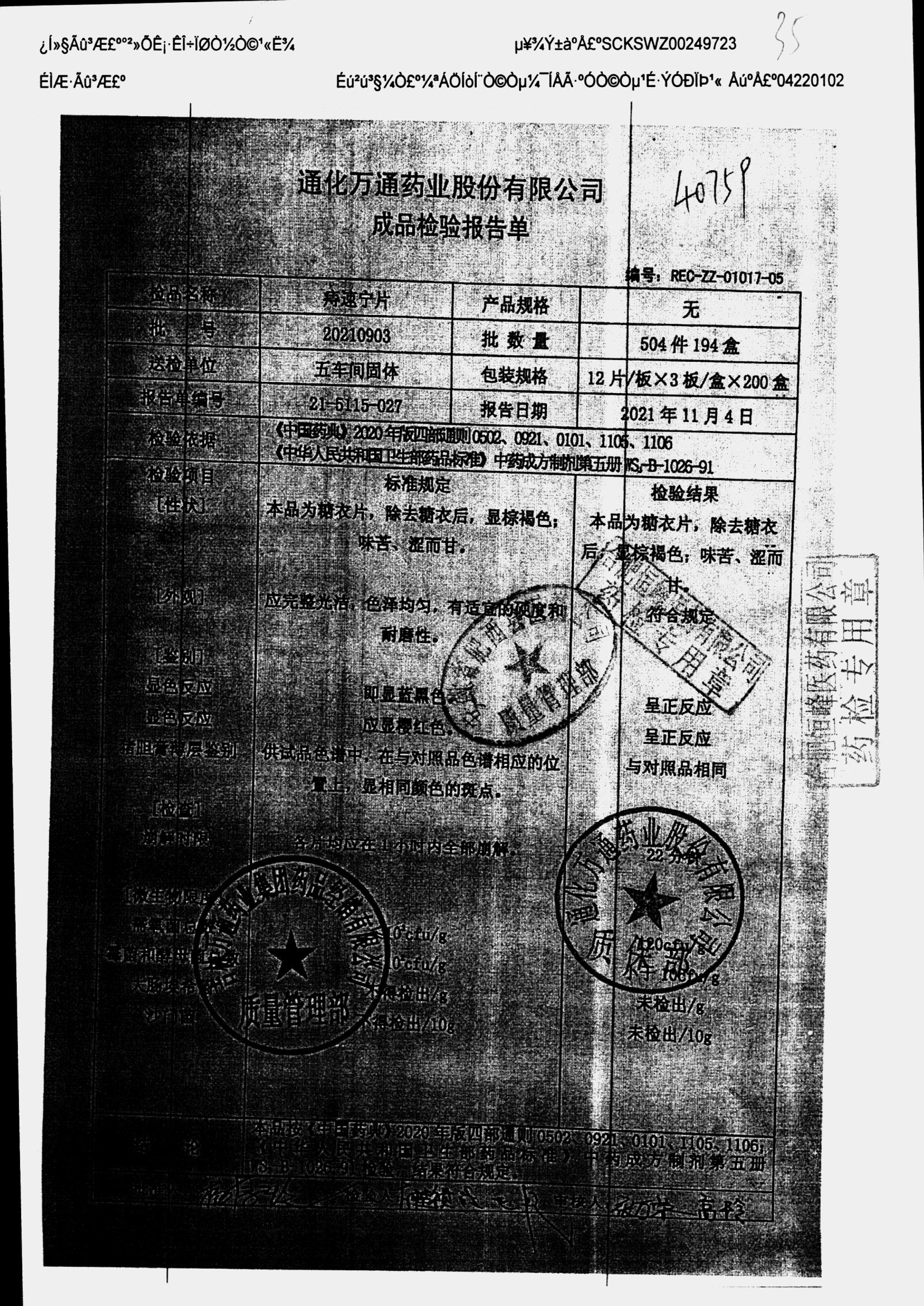 | 痔速宁片 | 12*3 | 20210501 | 查看详情 |