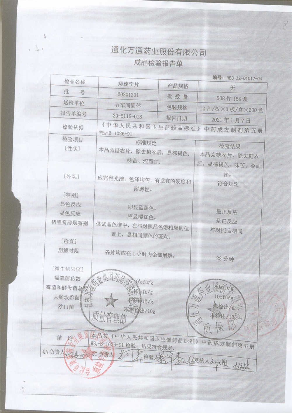 | 痔速宁片 | 12*3 | 20201208 | 查看详情 |