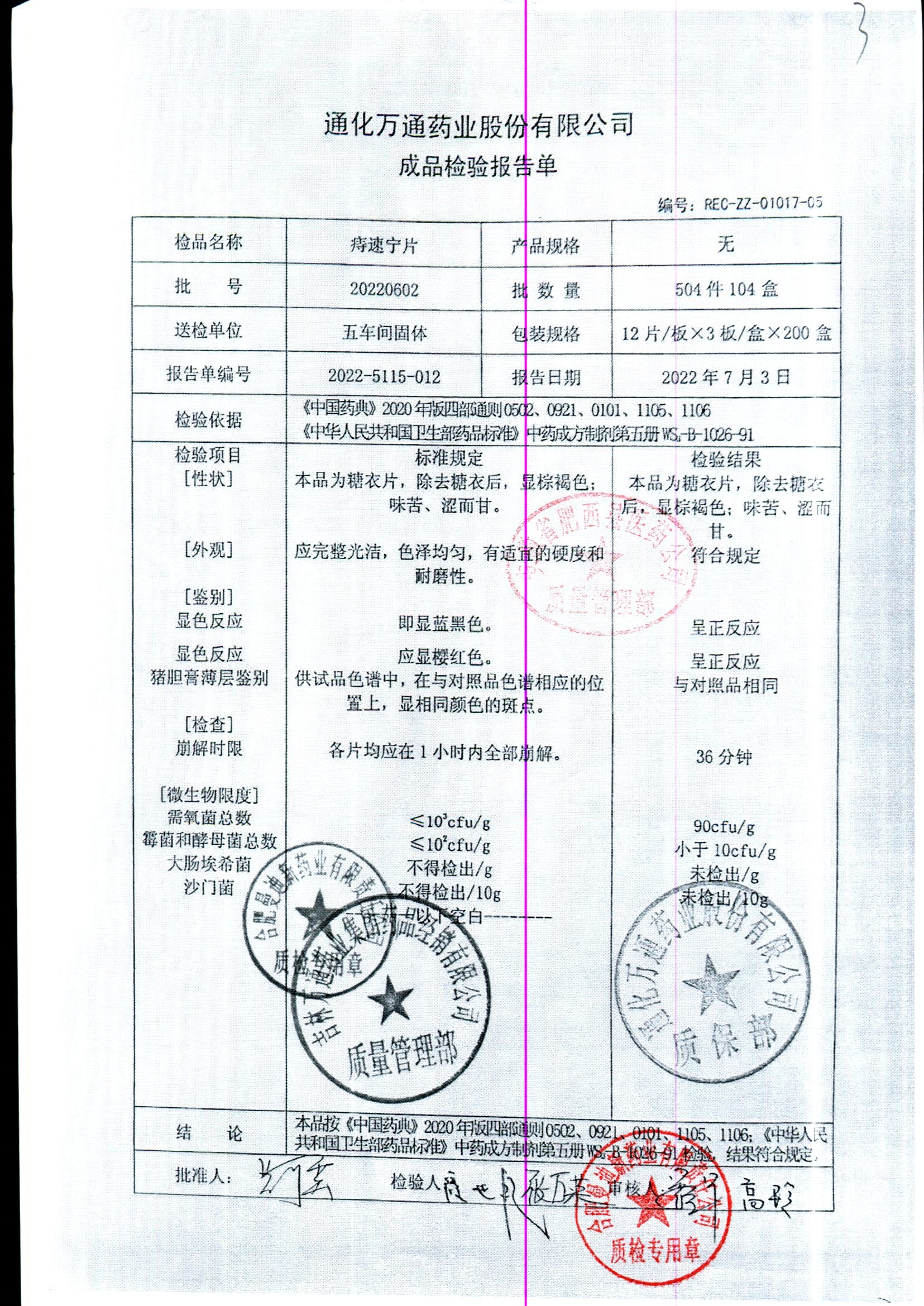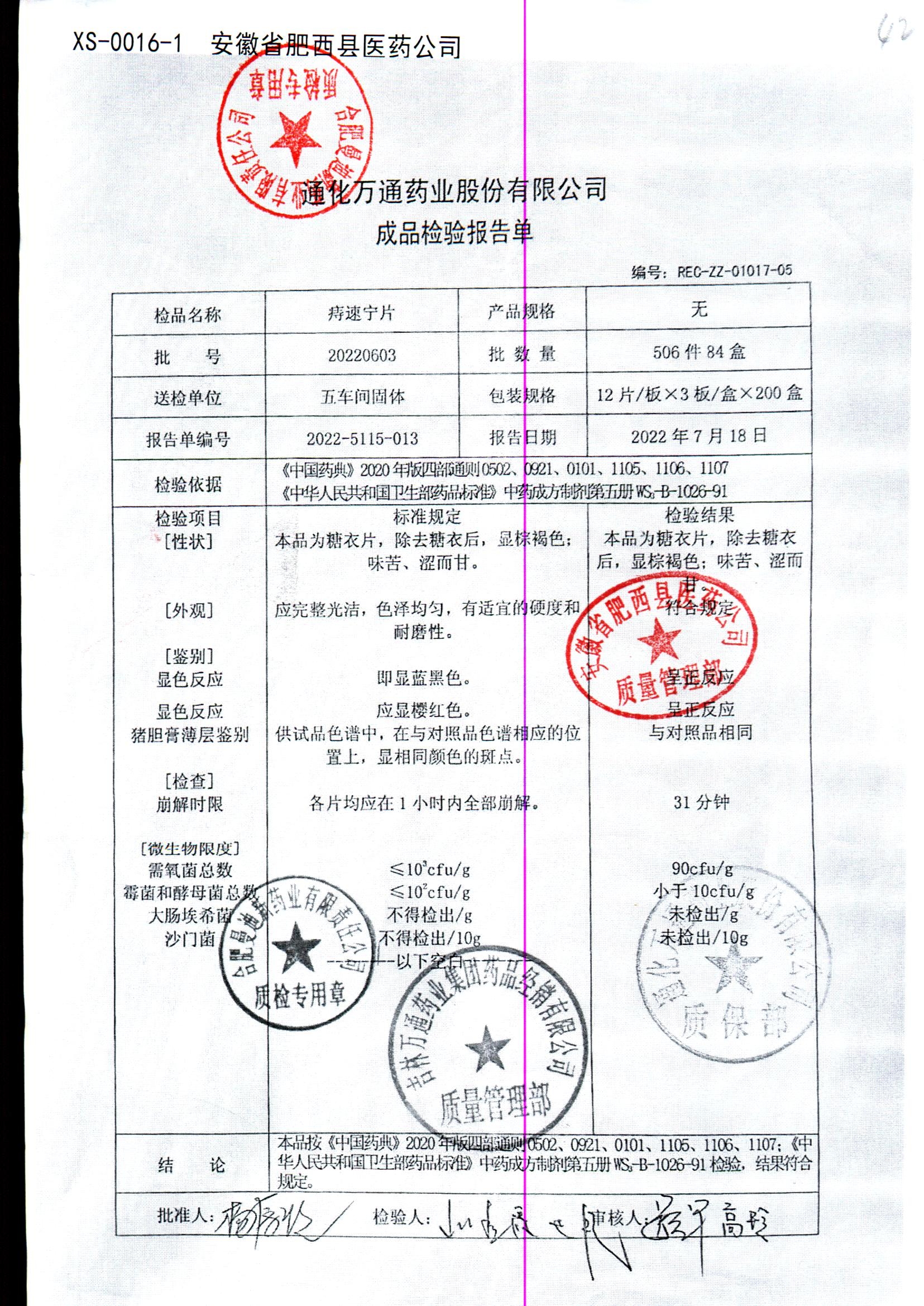 | 痔速宁片 | 12*3 | 20220603 | 查看详情 |