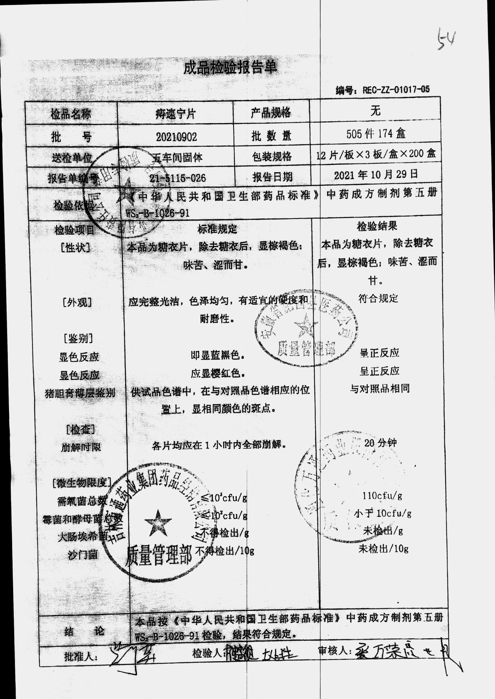 | 痔速宁片 | 12*3 | 20210903 | 查看详情 |