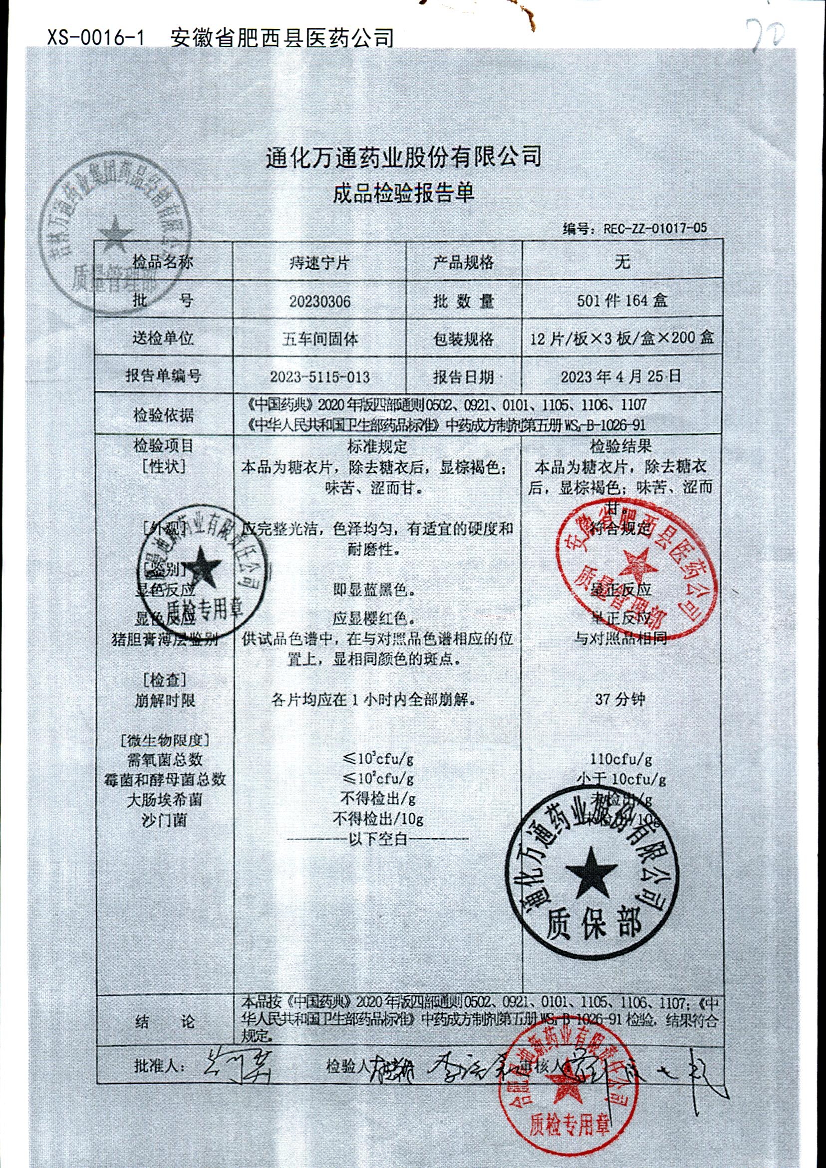 | 痔速宁片 | 12*3 | 20230306 | 查看详情 |