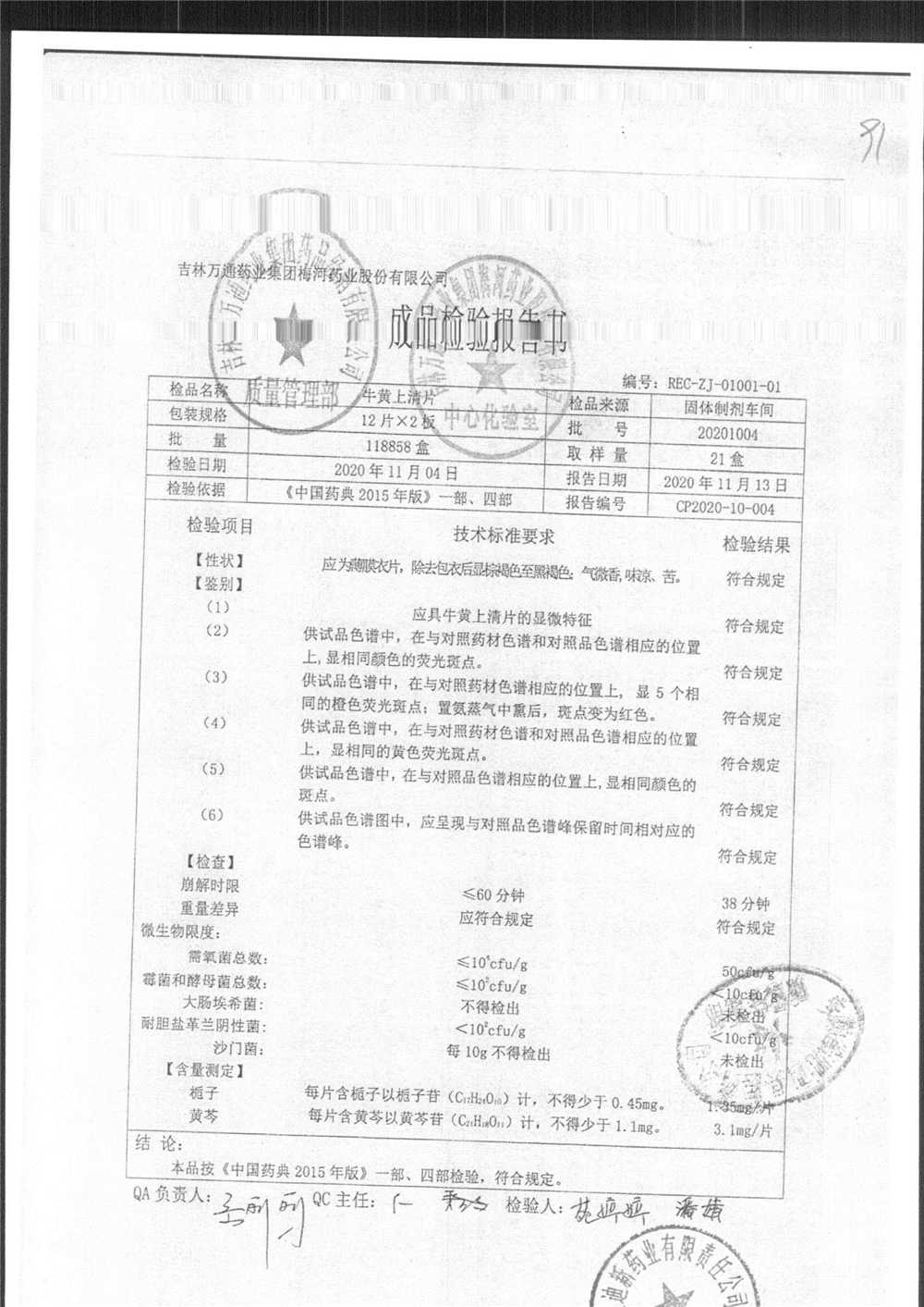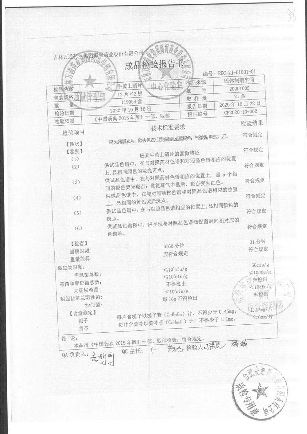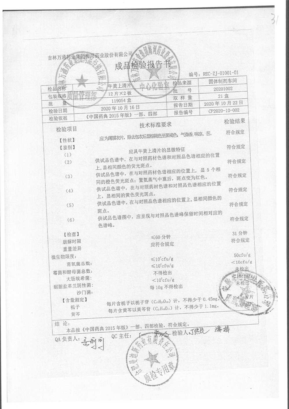 | 牛黄上清片 | 24s | 20201004 | 查看详情 |
