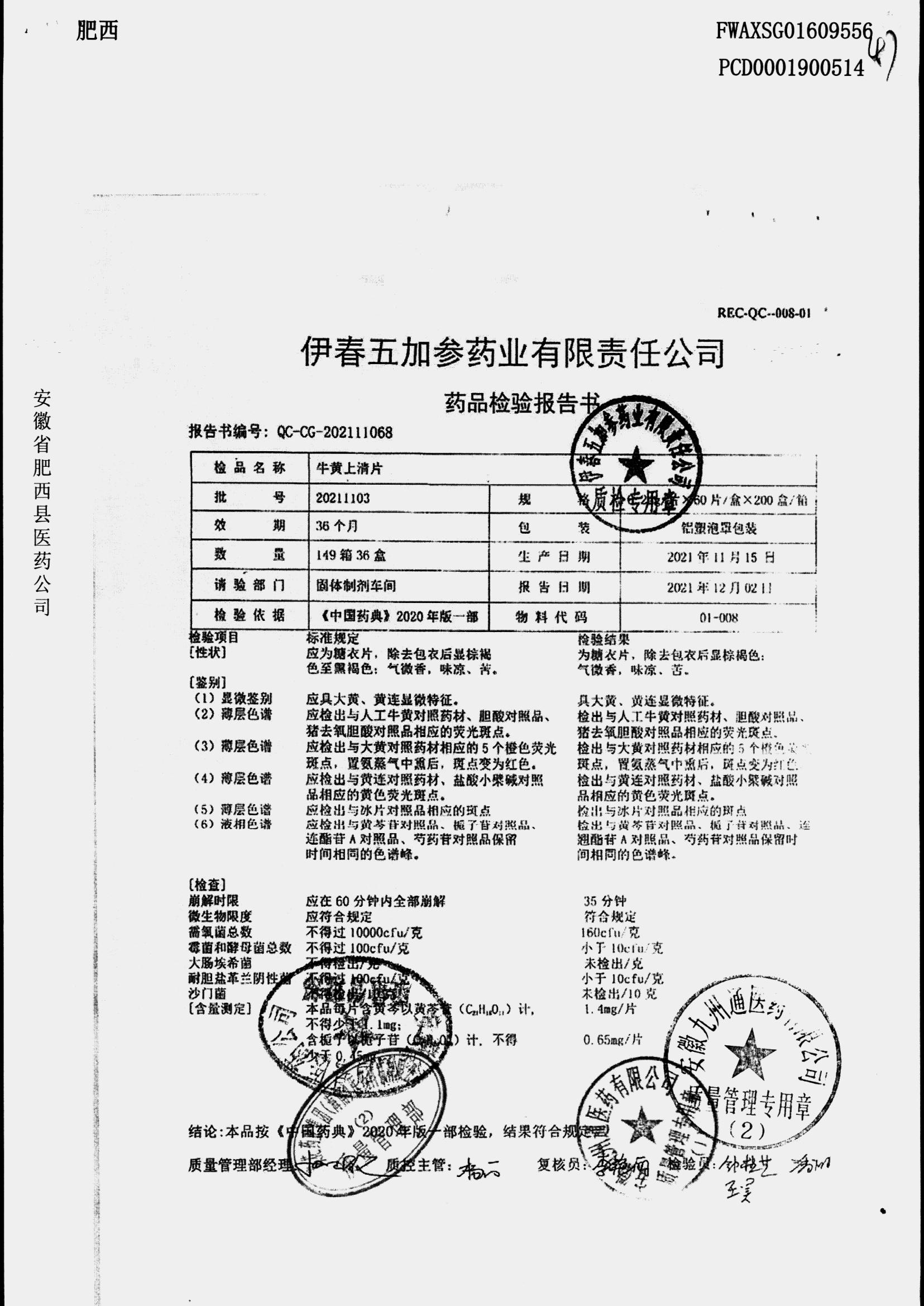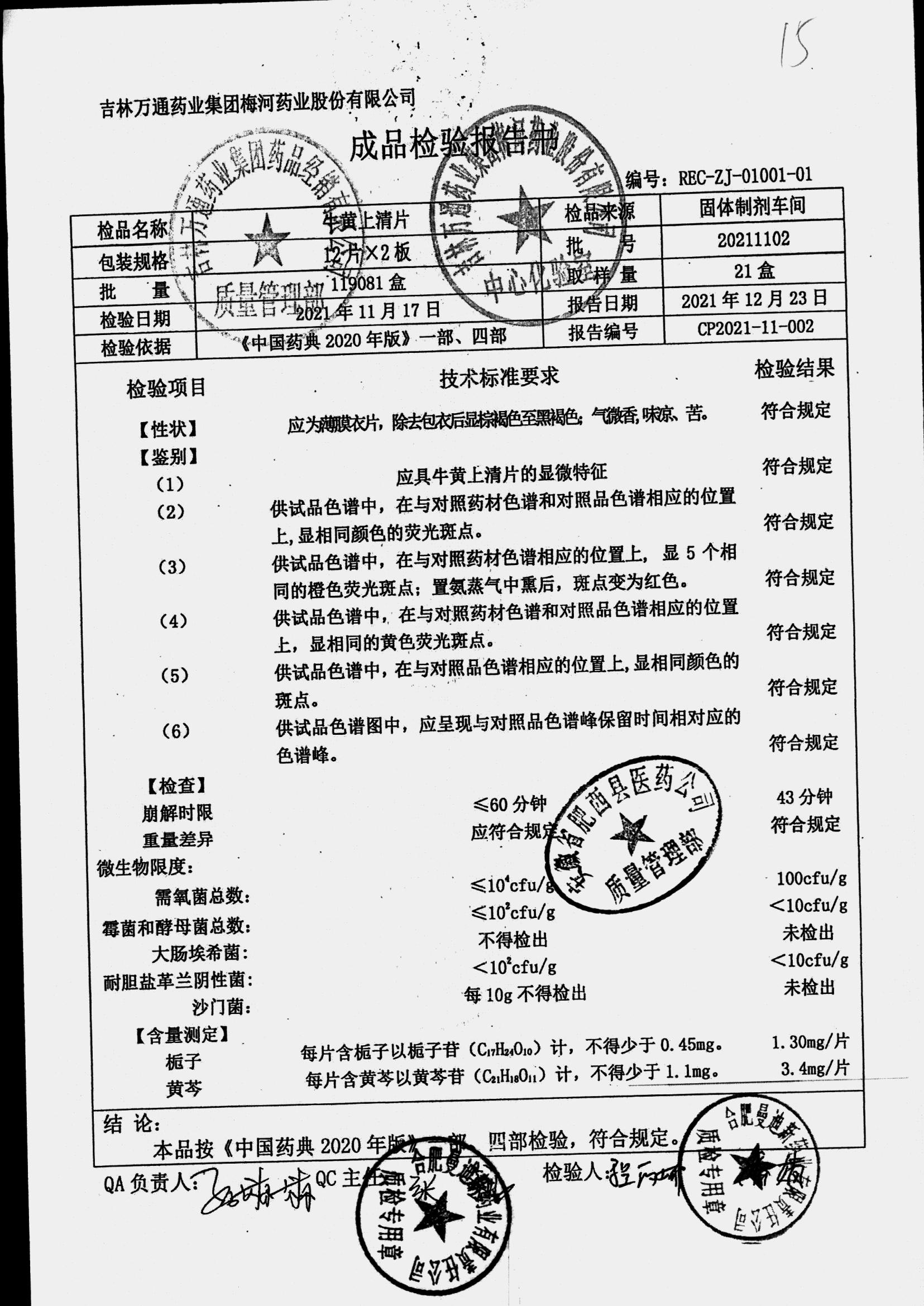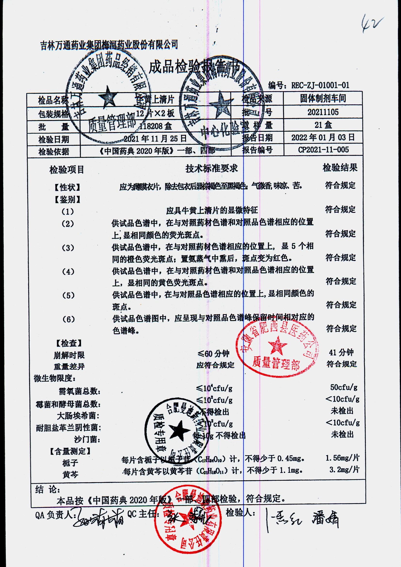 | 牛黄上清片 | 24s | 20211102 | 查看详情 |