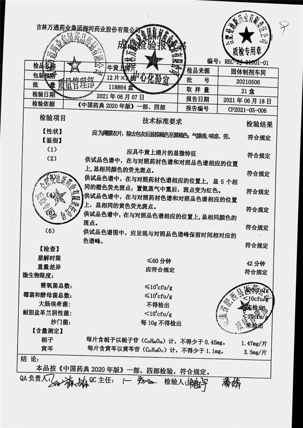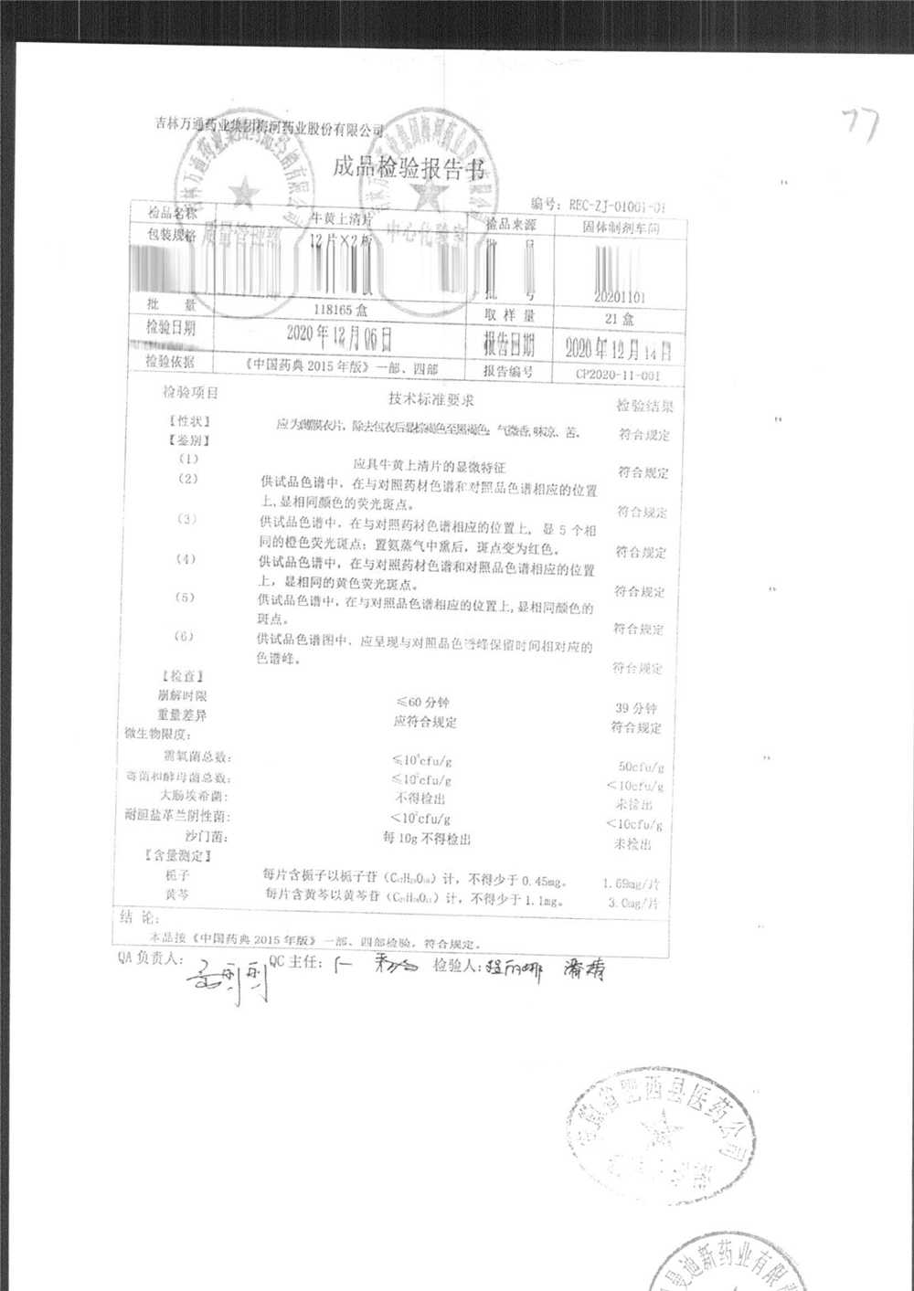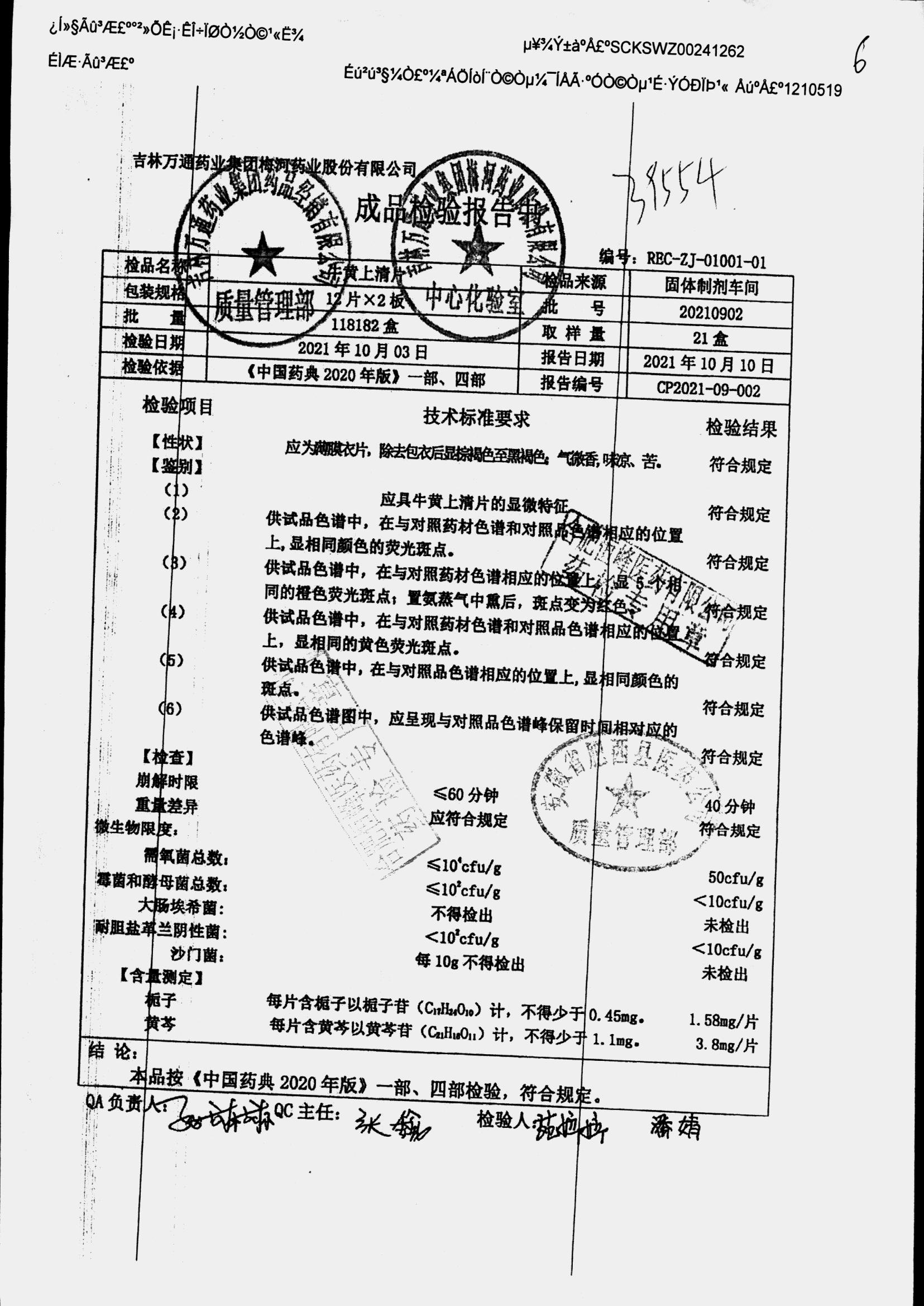 | 牛黄上清片 | 24s | 20211102 | 查看详情 |