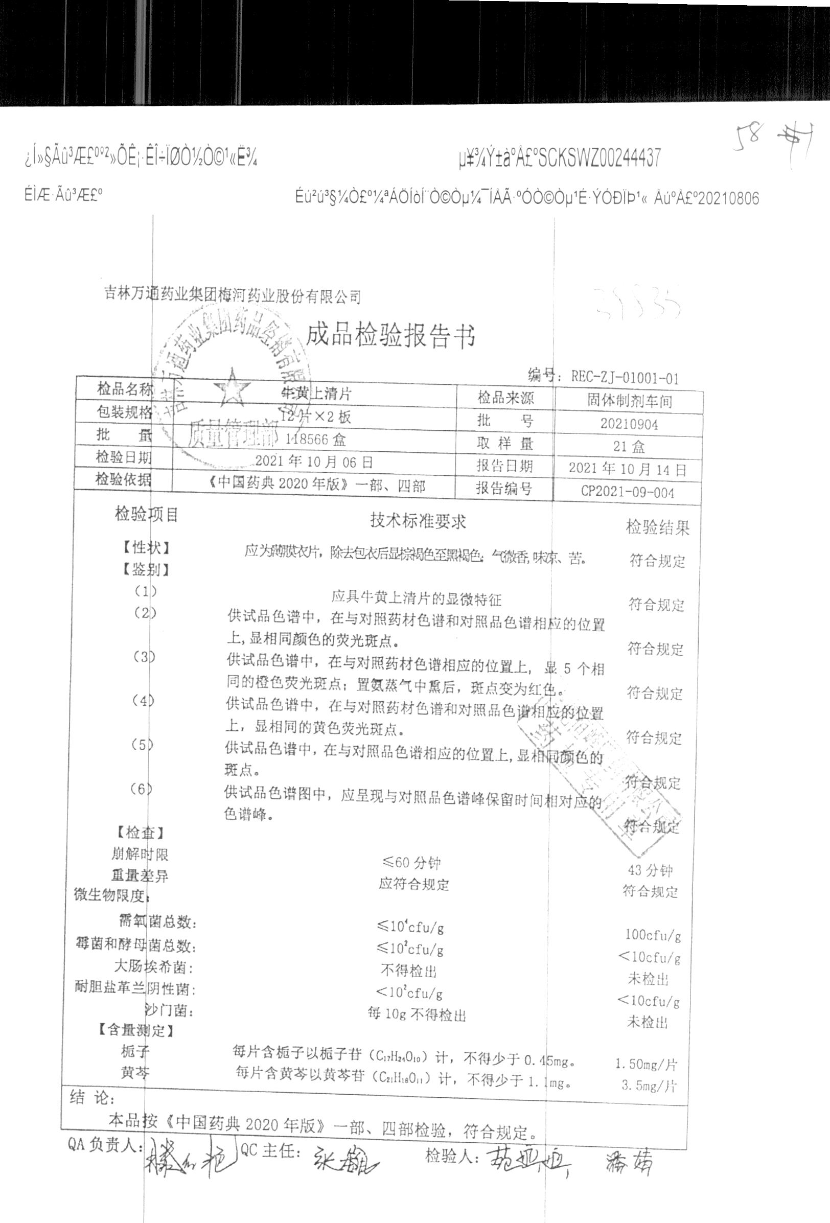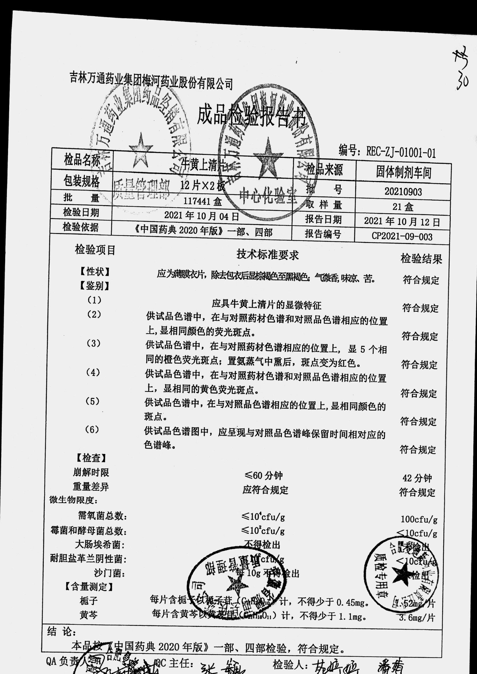 | 牛黄上清片 | 24s | 20210904 | 查看详情 |