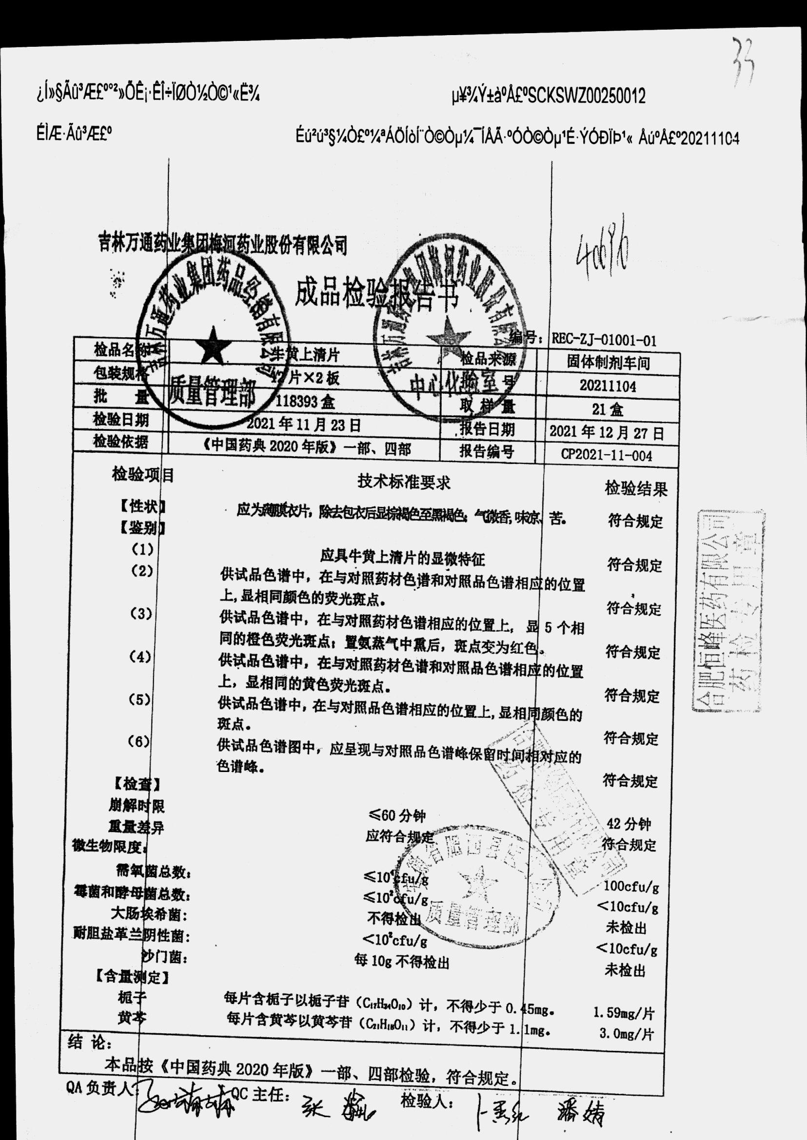 | 牛黄上清片 | 24s | 20211104 | 查看详情 |
