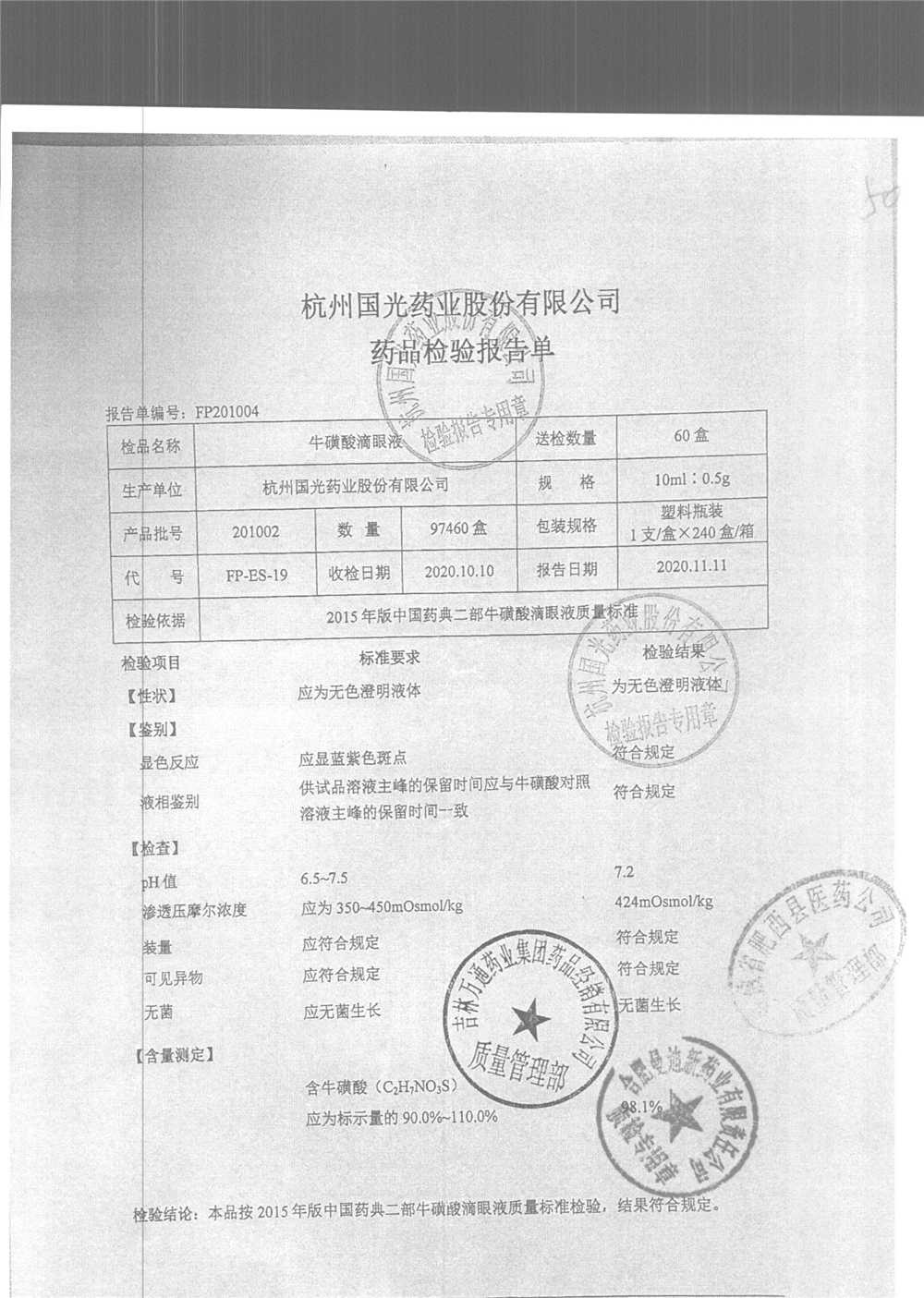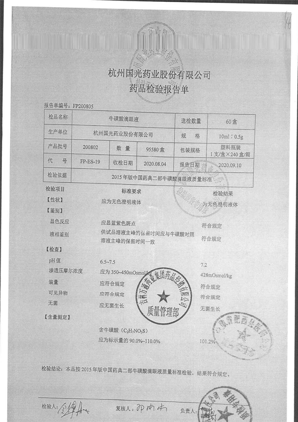 | 牛磺酸滴眼液 | 10ml:0.5g*1支 | 201002 | 查看详情 |