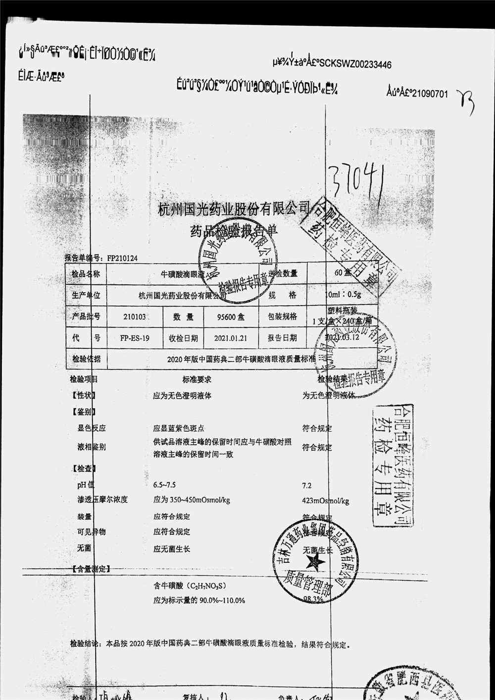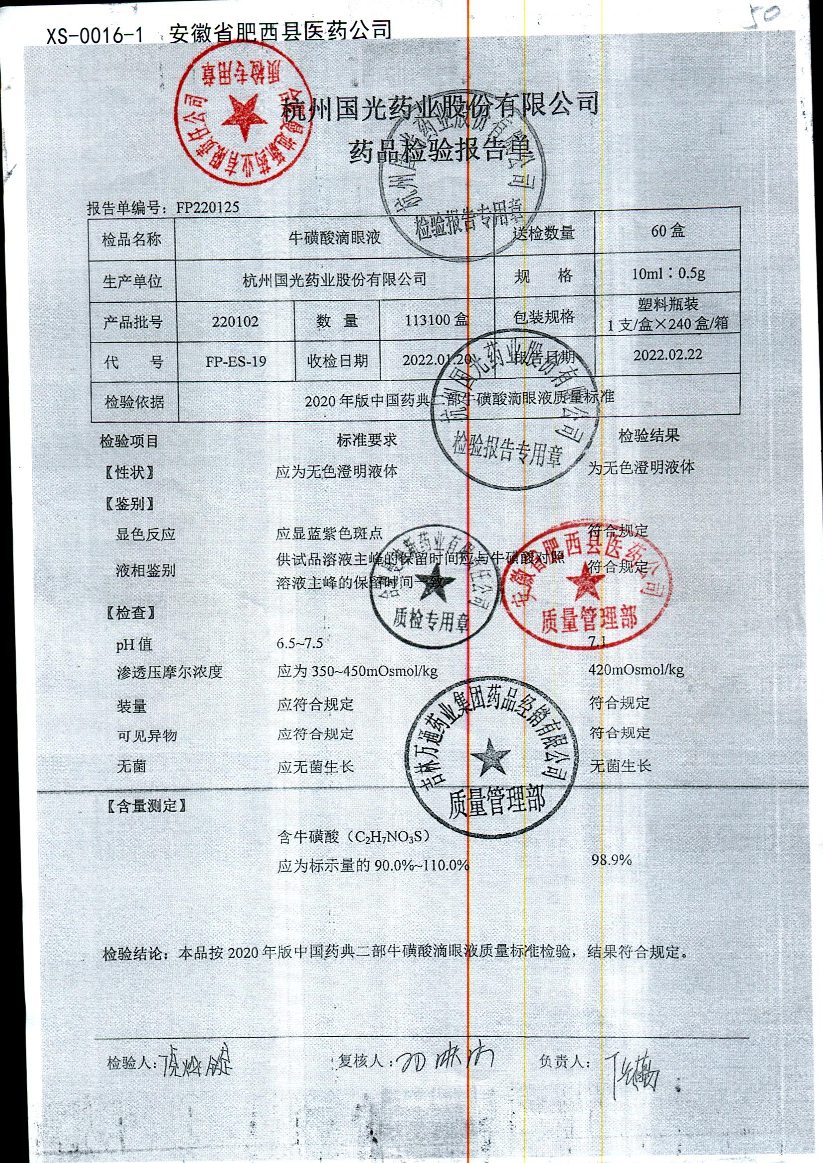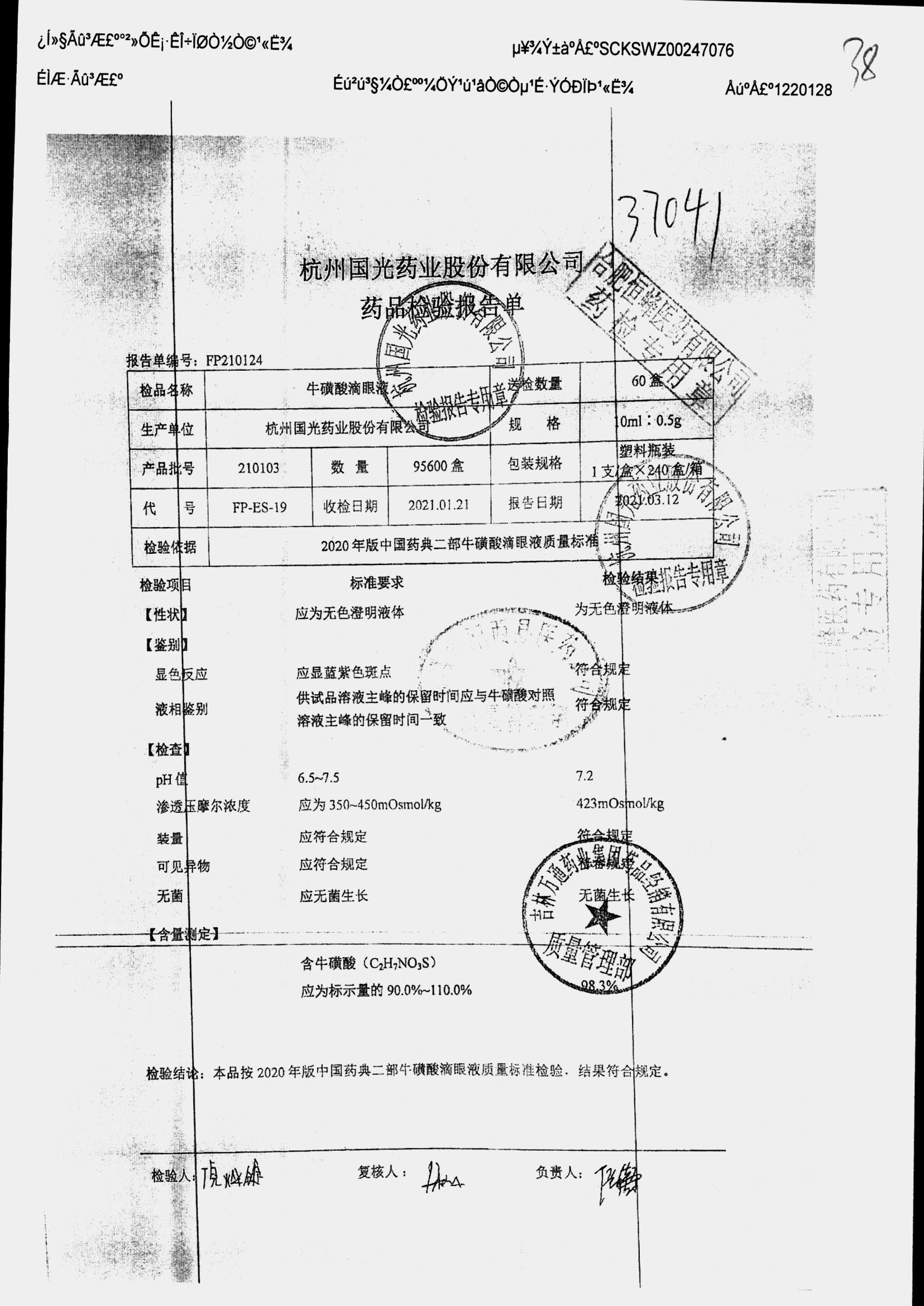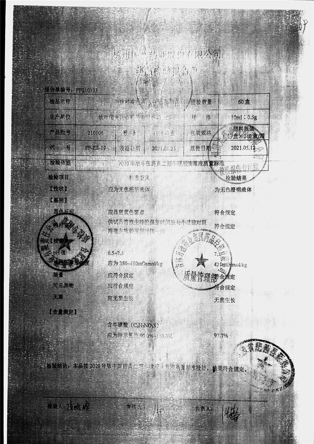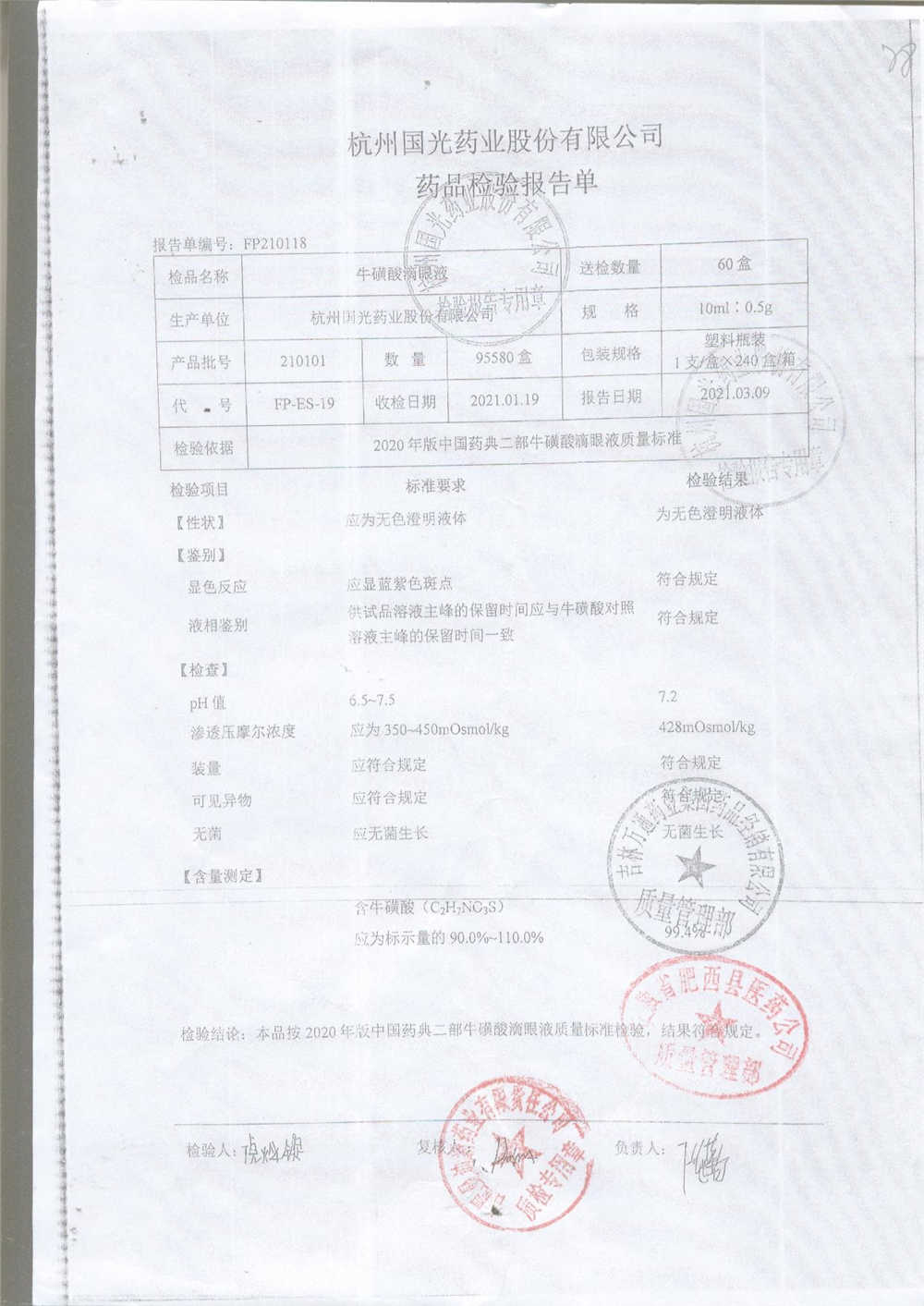| 牛磺酸滴眼液 | 10ml:0.5g*1支 | 210106 | 查看详情 |