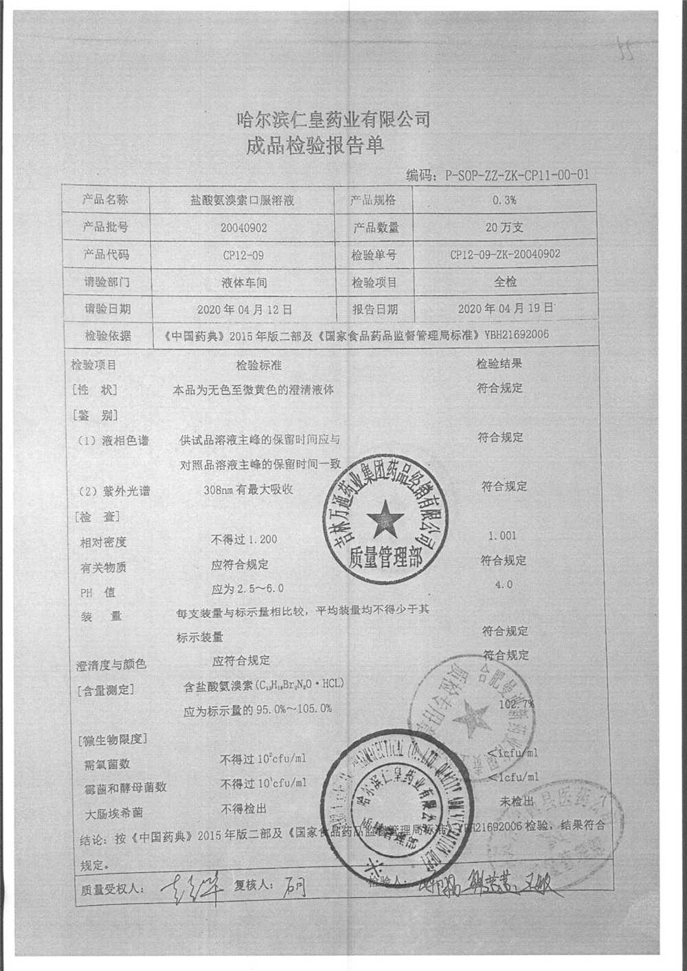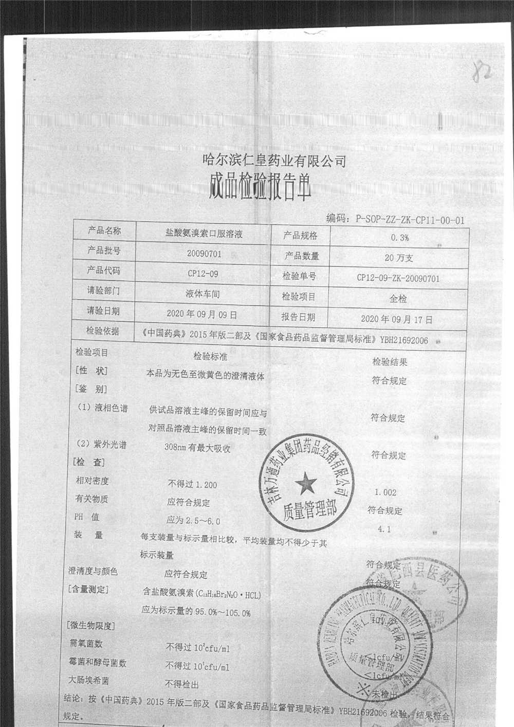 药检报告