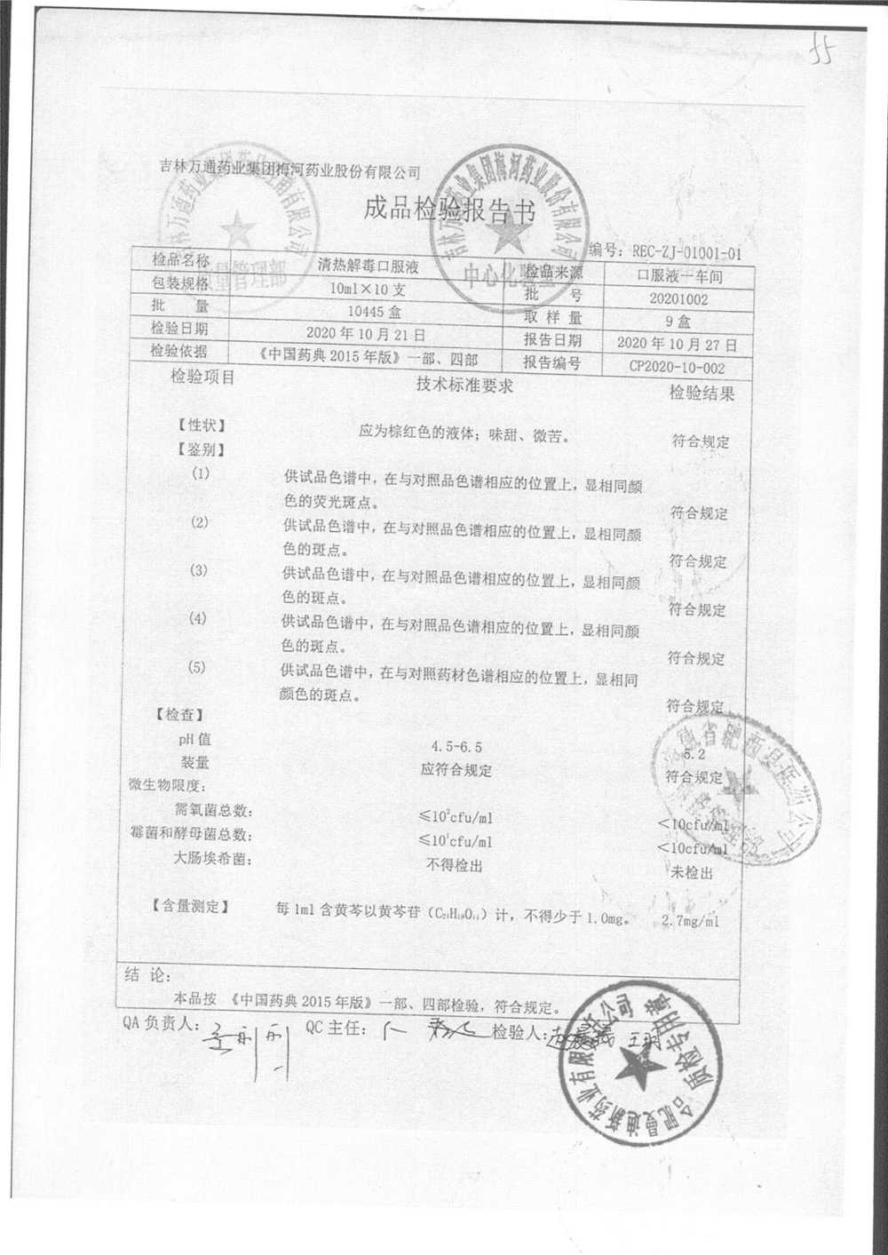 | 清热解毒口服液 | 10ml*10支 | 20201002 | 查看详情 |