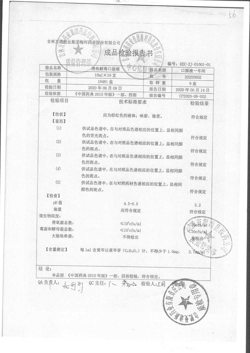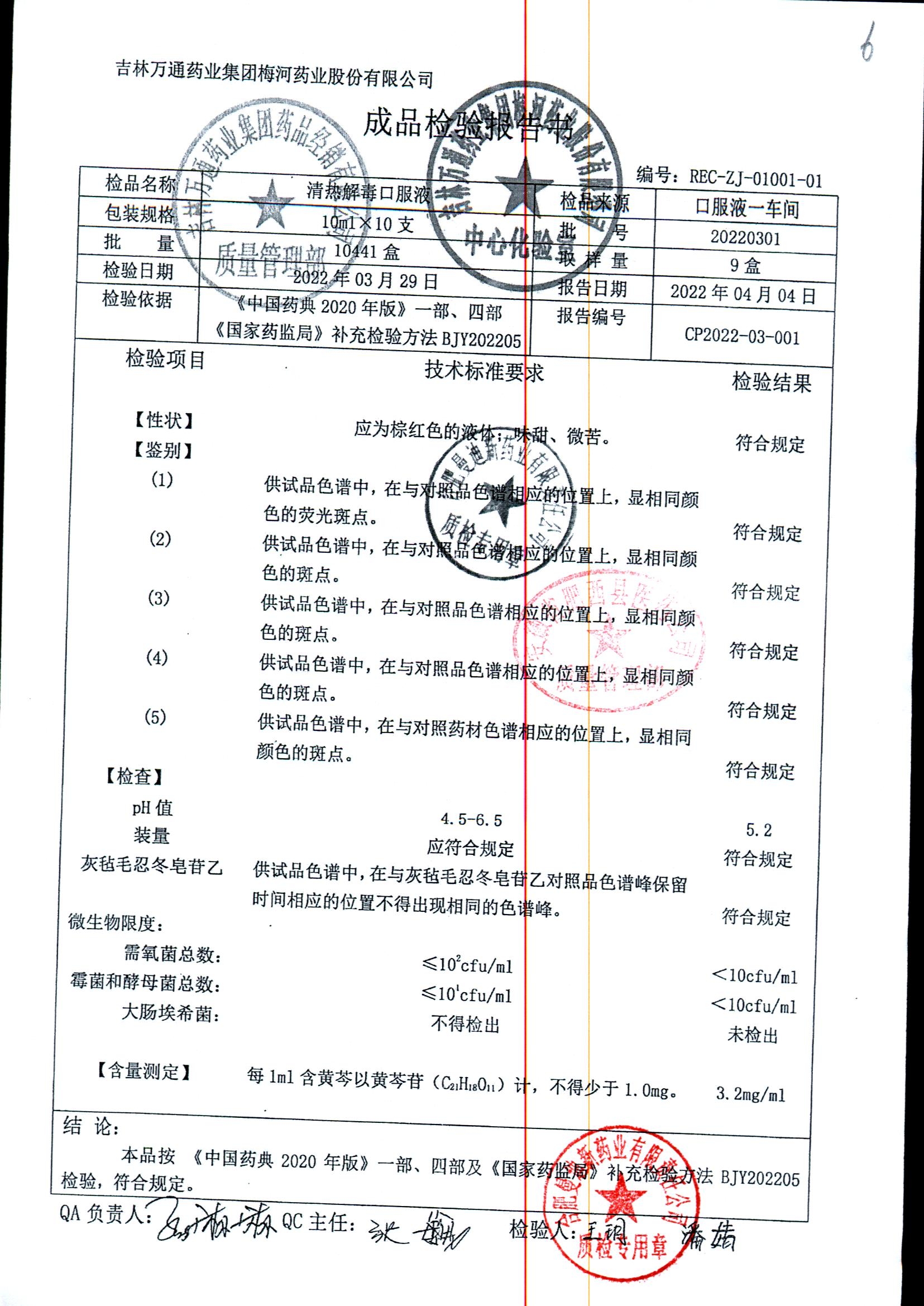 | 清热解毒口服液 | 10ml*10支 | 20200602 | 查看详情 |