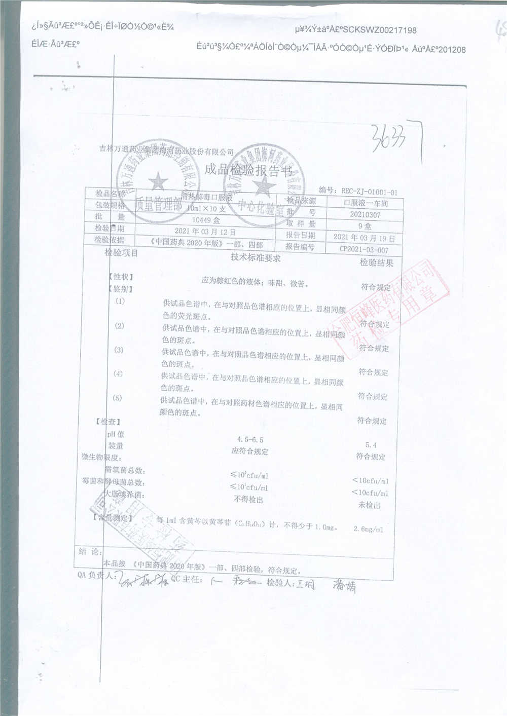 | 清热解毒口服液 | 10ml*10支 | 20210307 | 查看详情 |