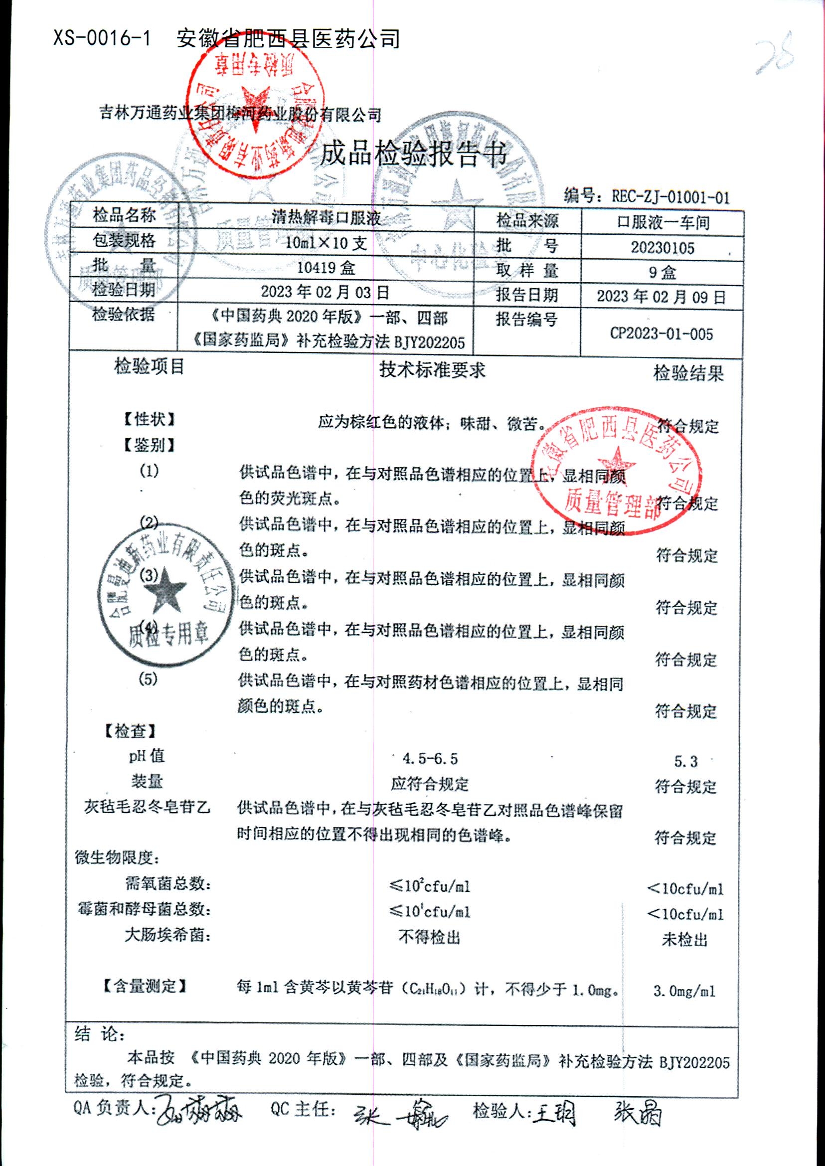 | 清热解毒口服液 | 10ml*10支 | 20220301 | 查看详情 |