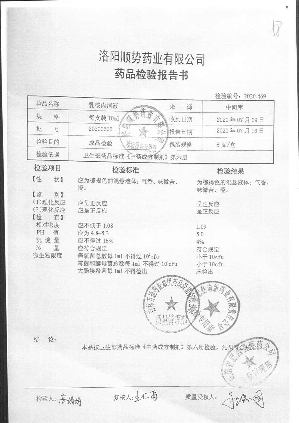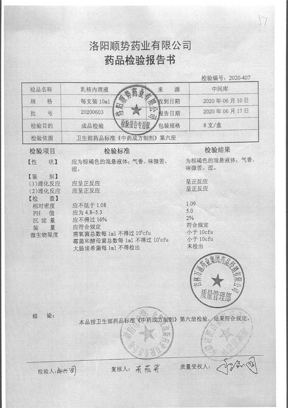 | 乳核内消液 | 10ml*8支 | 20200605 | 查看详情 |