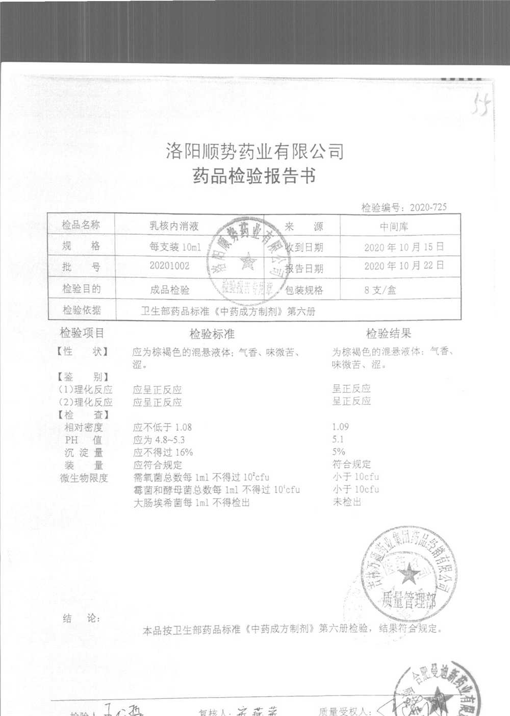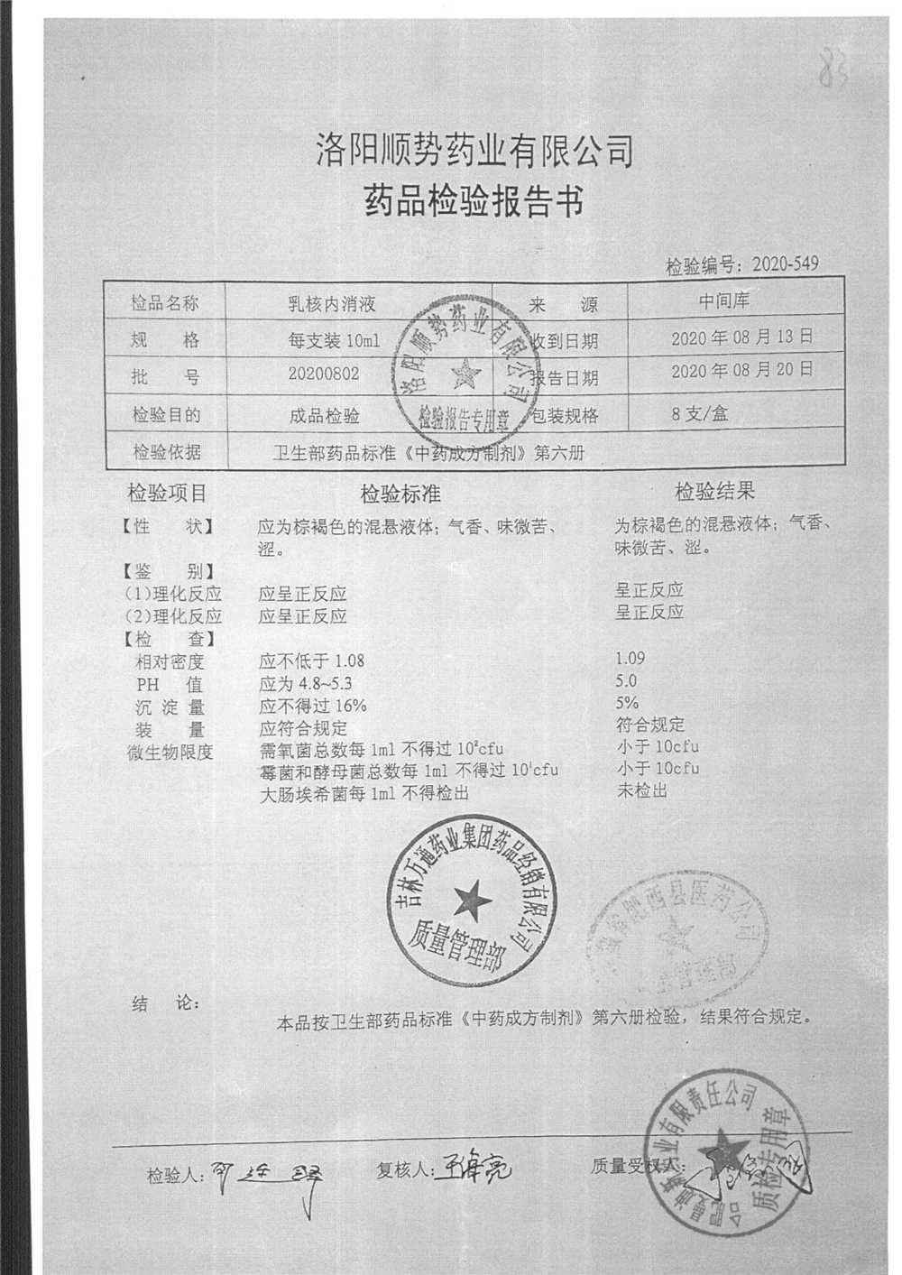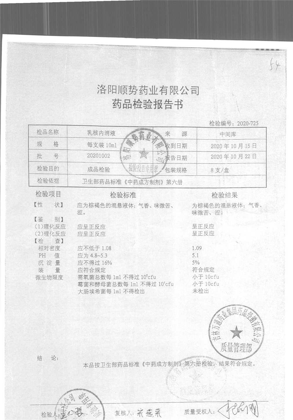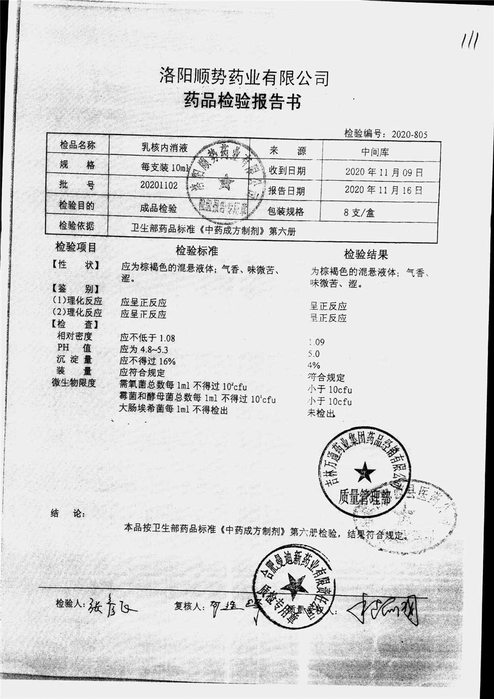 | 乳核内消液 | 10ml*8支 | 20201102 | 查看详情 |