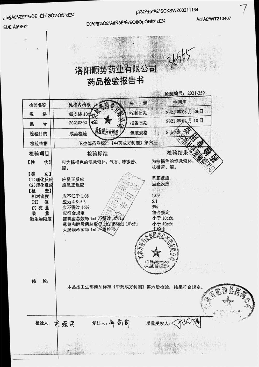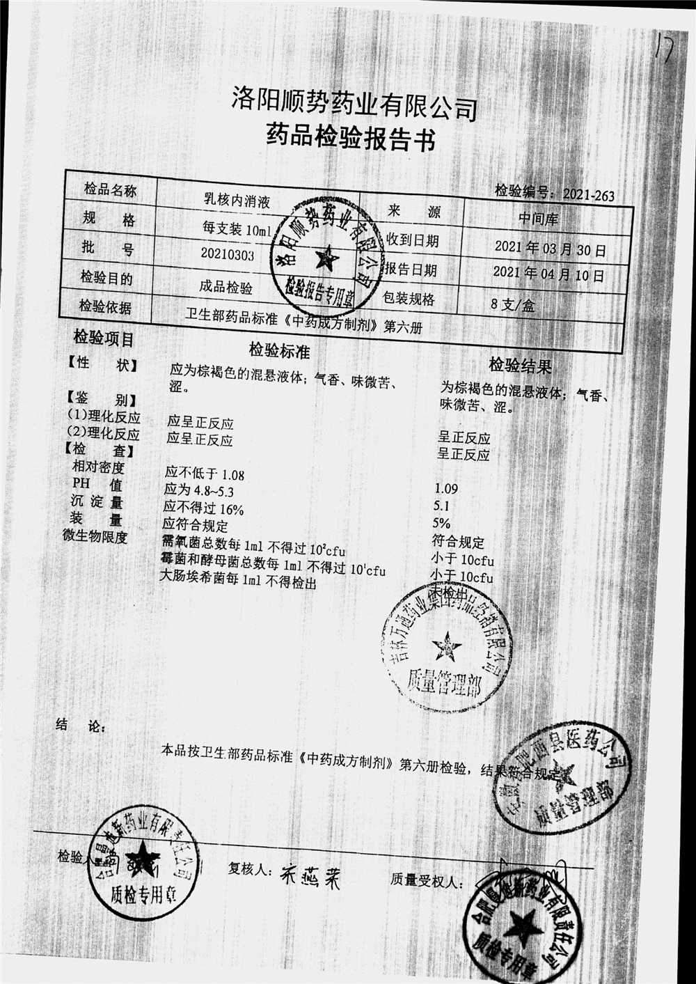 | 乳核内消液 | 10ml*8支 | 20210305 | 查看详情 |
