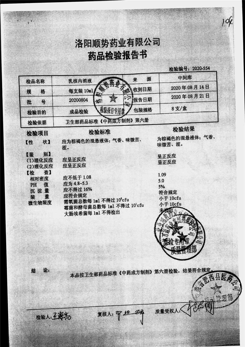 | 乳核内消液 | 10ml*8支 | 20201104 | 查看详情 |