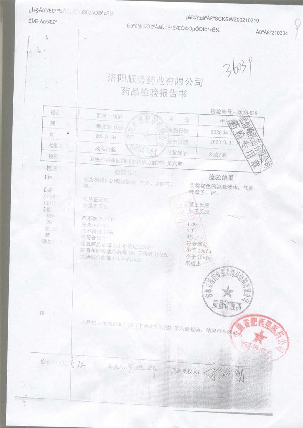 | 乳核内消液 | 10ml*8支 | 20201103 | 查看详情 |