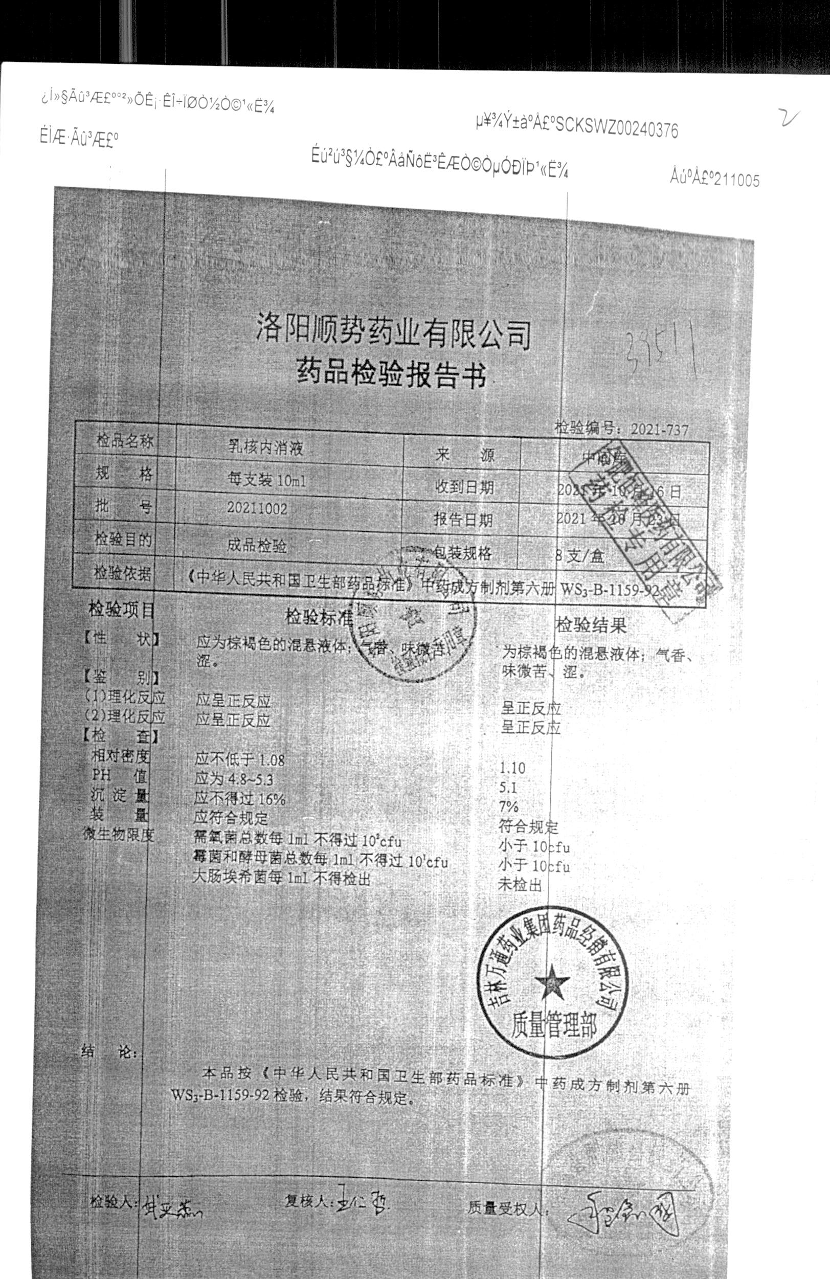 | 乳核内消液 | 10ml*8支 | 20211002 | 查看详情 |