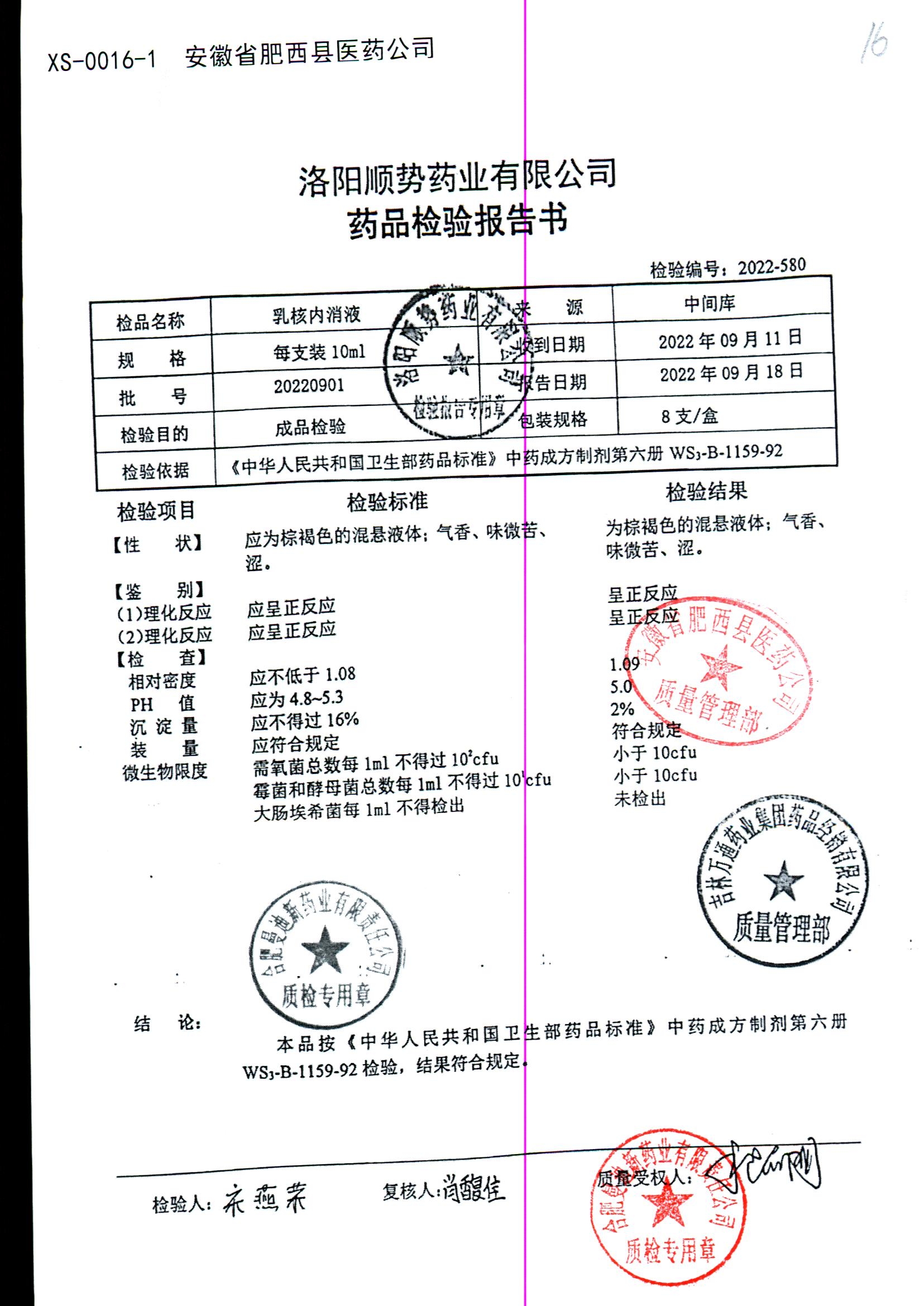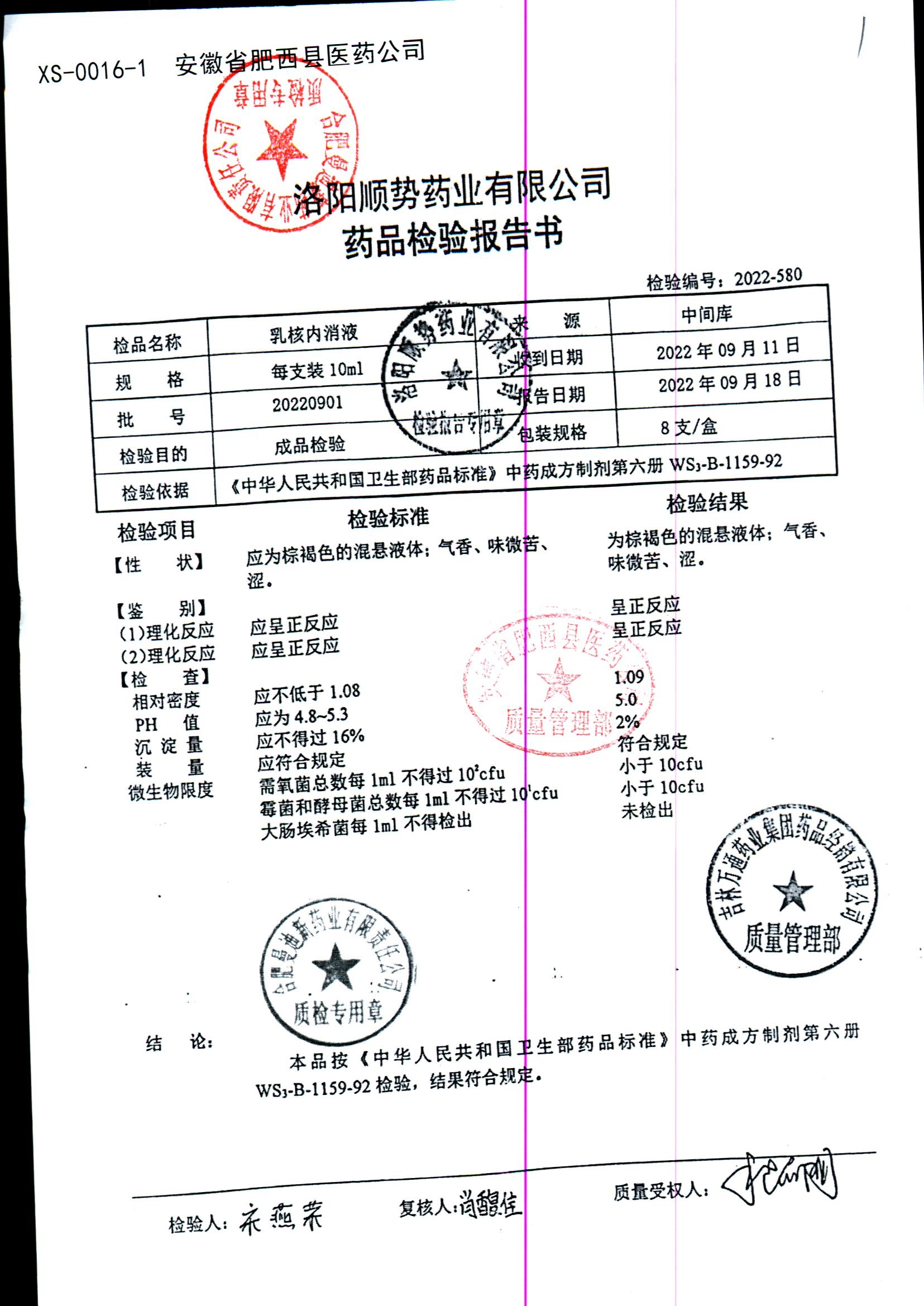 | 乳核内消液 | 10ml*8支 | 20220901 | 查看详情 |
