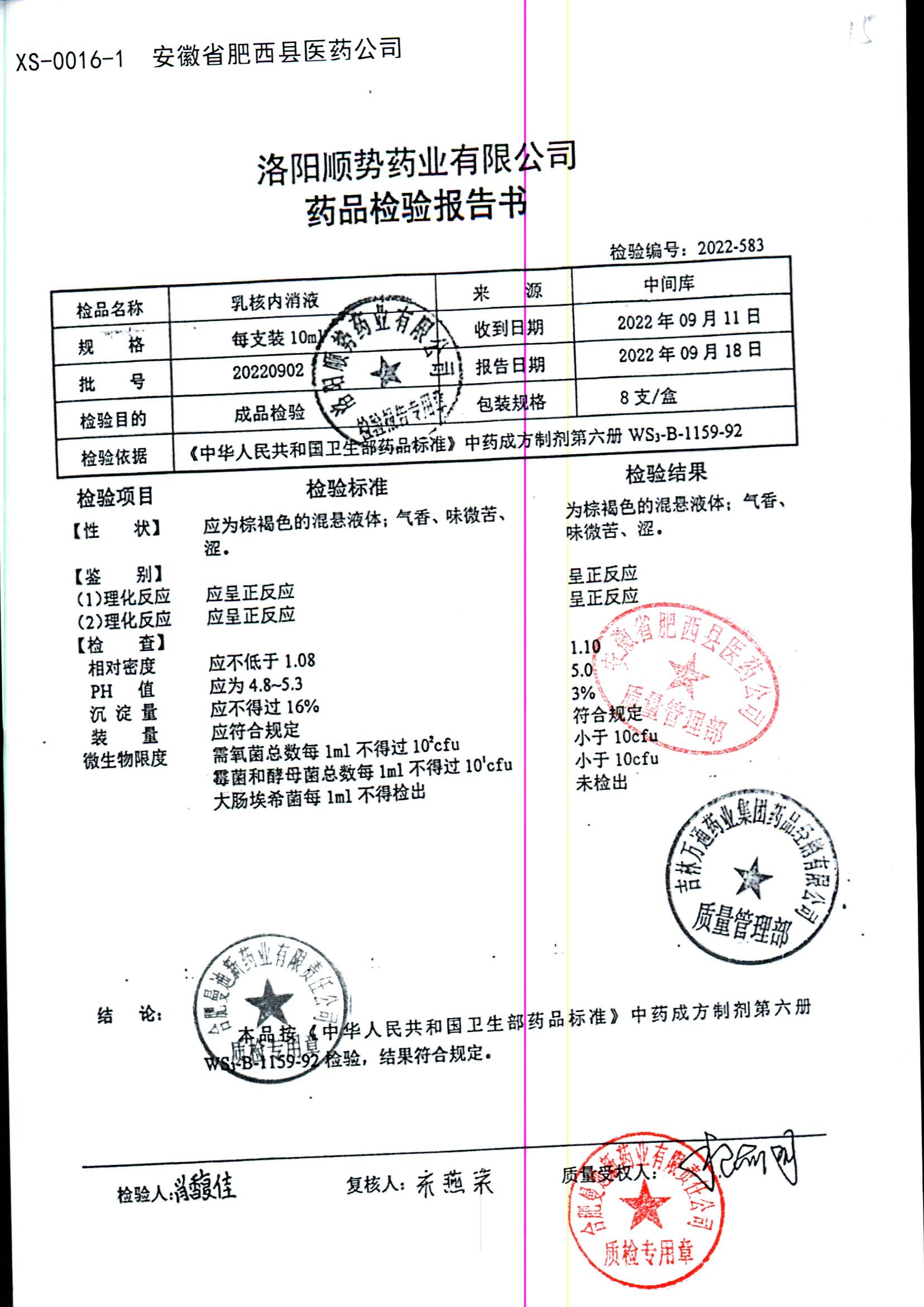 | 乳核内消液 | 10ml*8支 | 20220902 | 查看详情 |