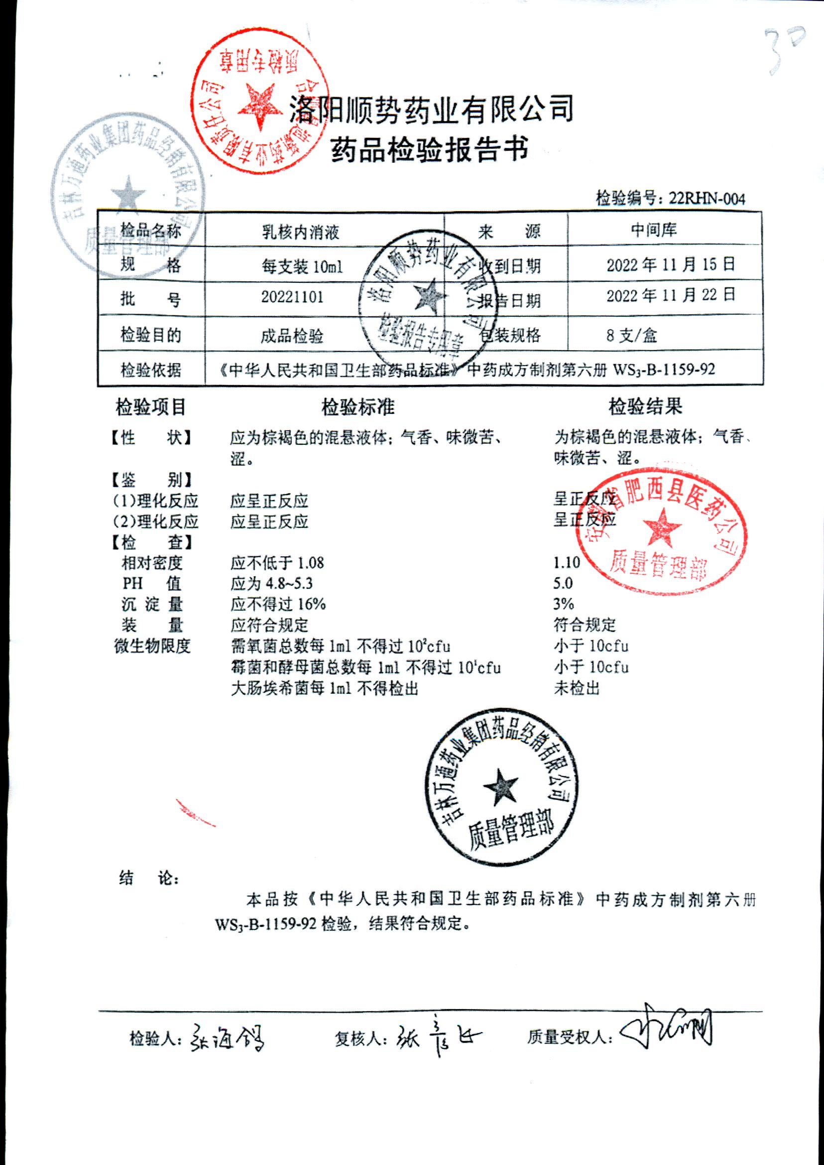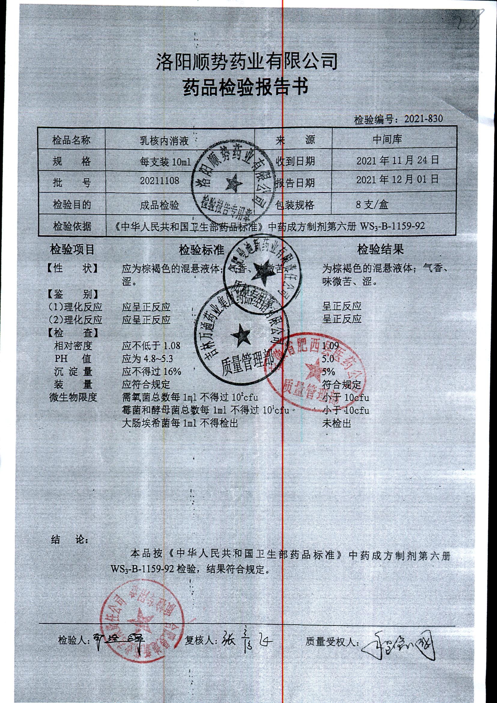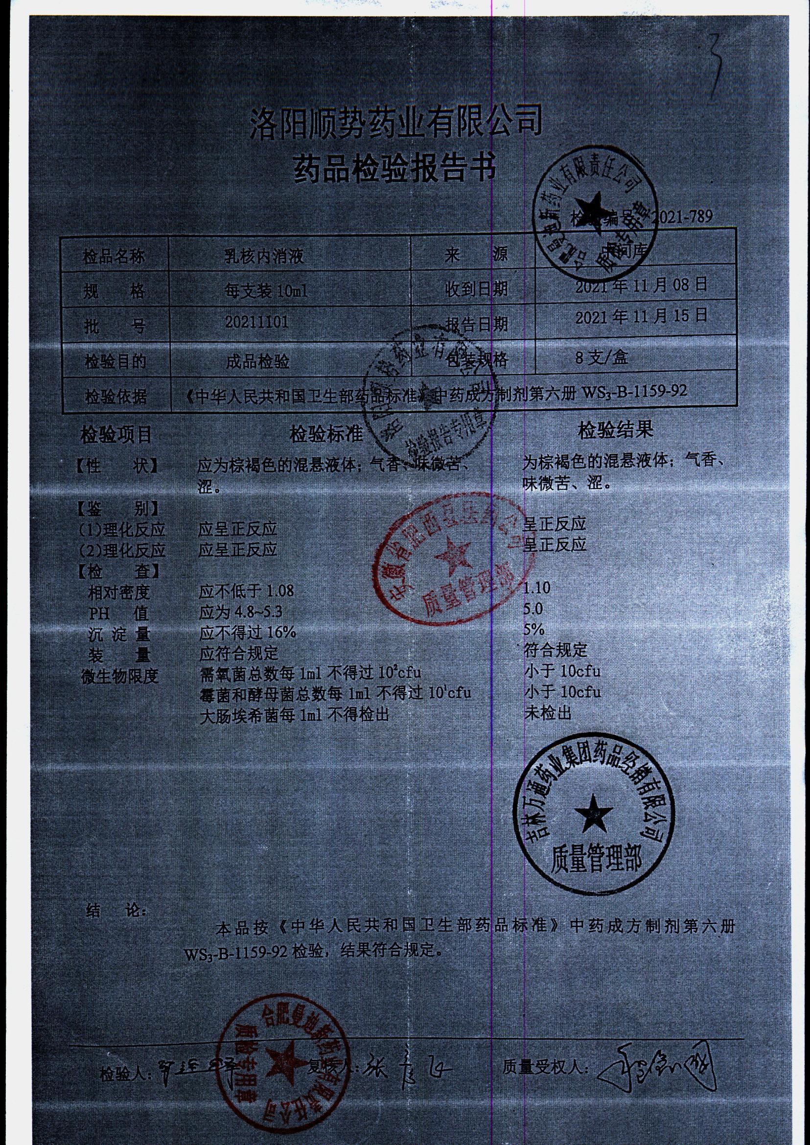 | 乳核内消液 | 10ml*8支 | 20211103 | 查看详情 |