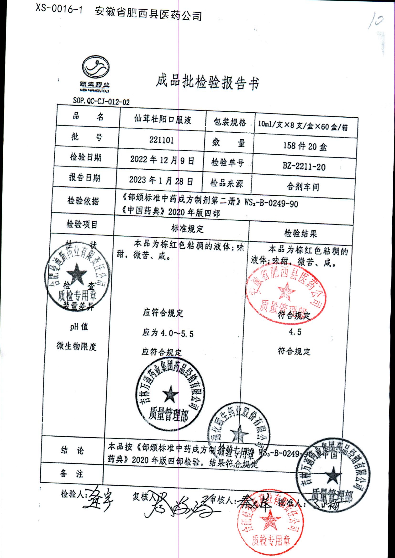 | 仙茸壮阳口服液 | 10ml*8支 | 201106 | 查看详情 |