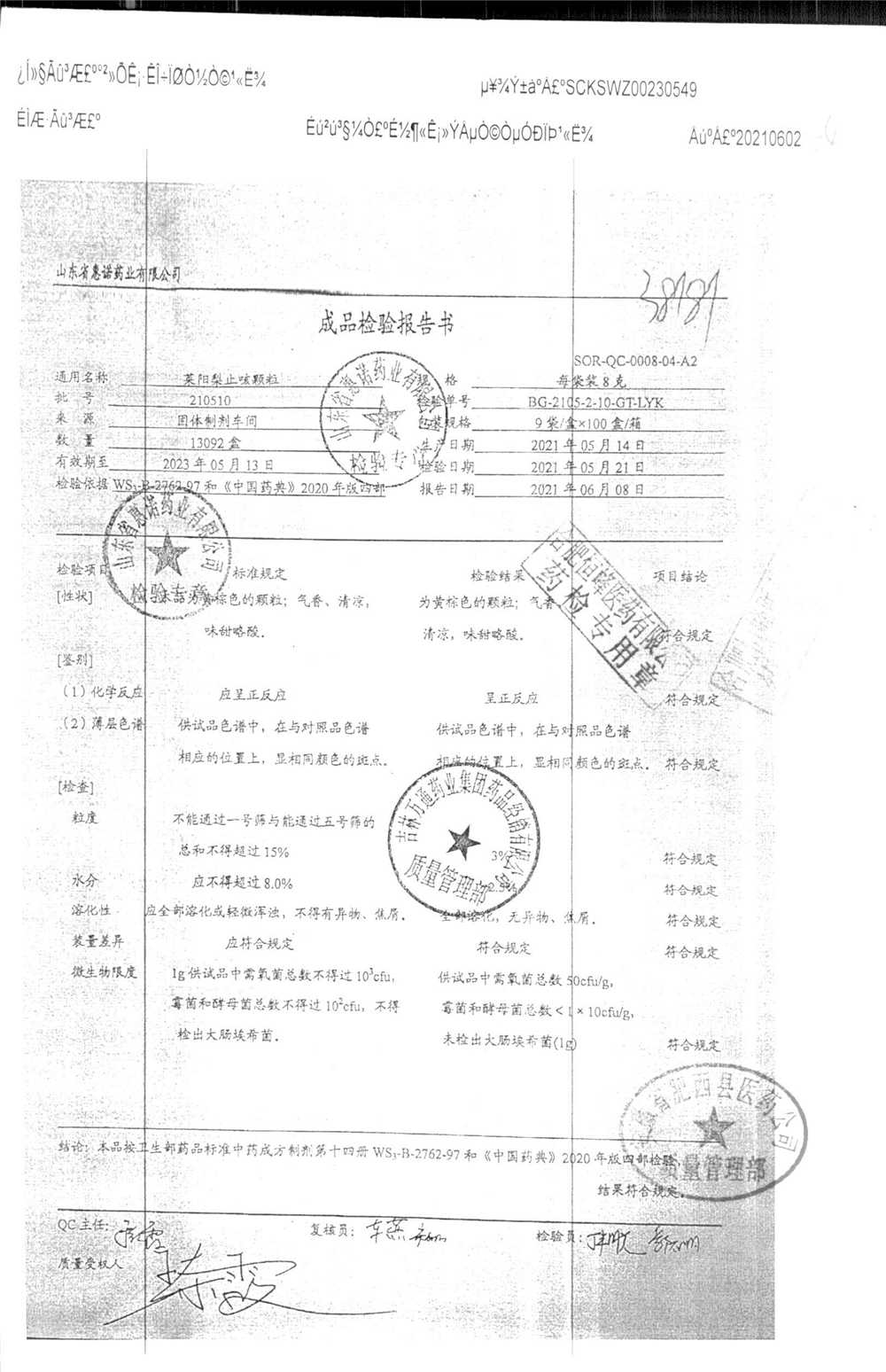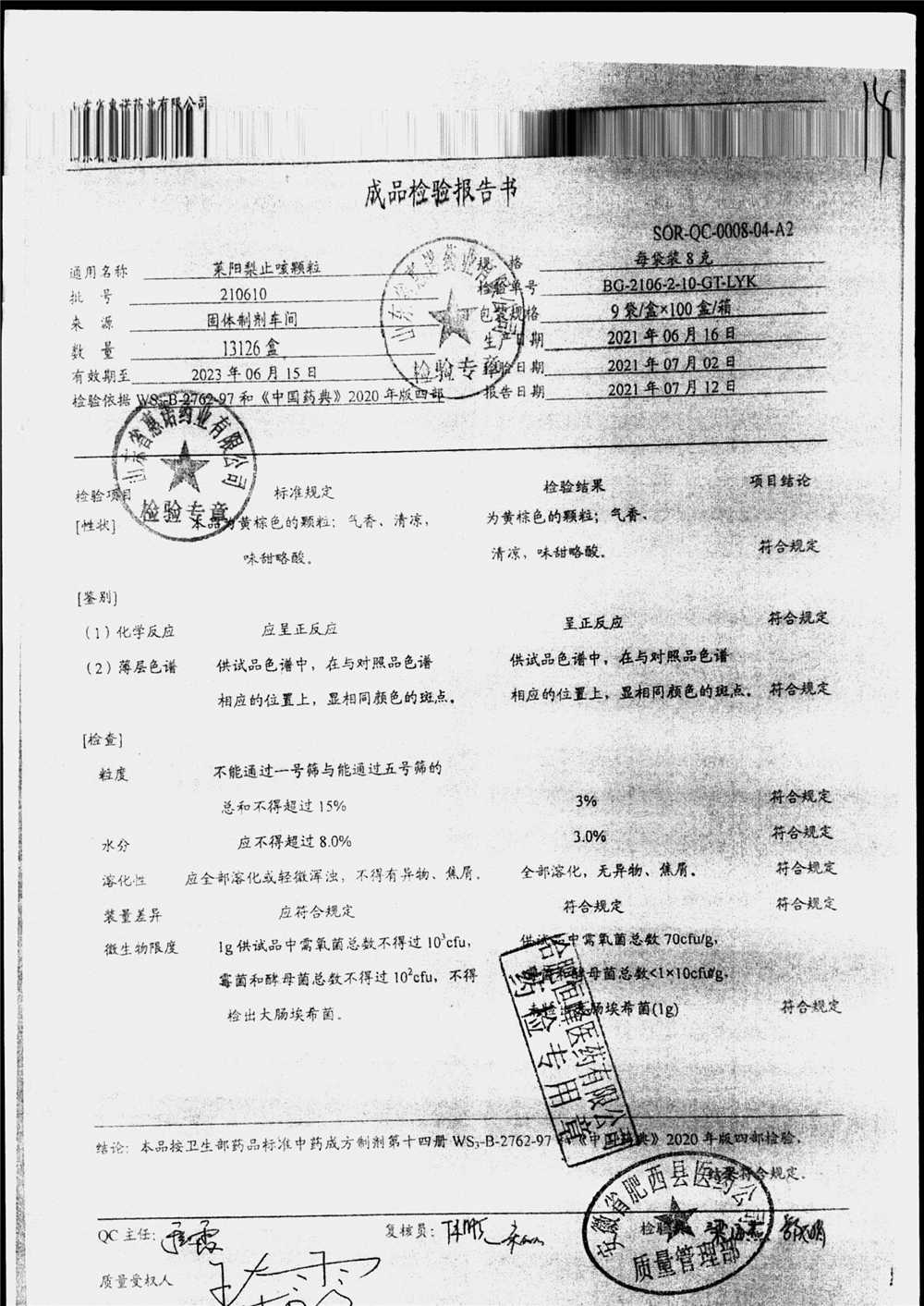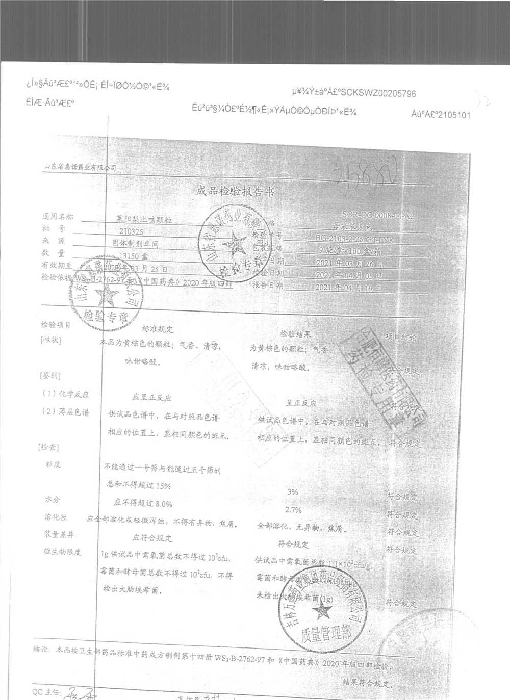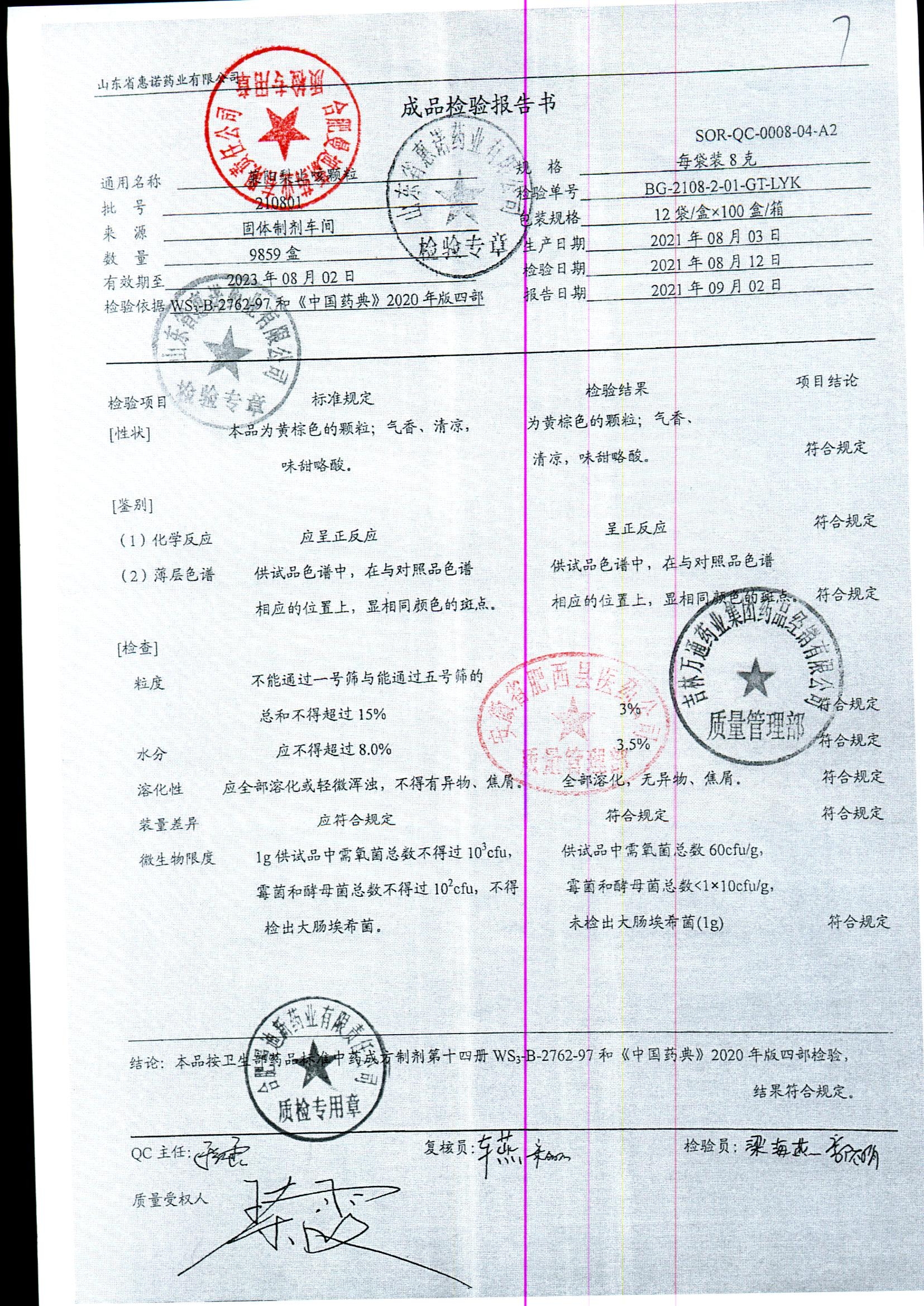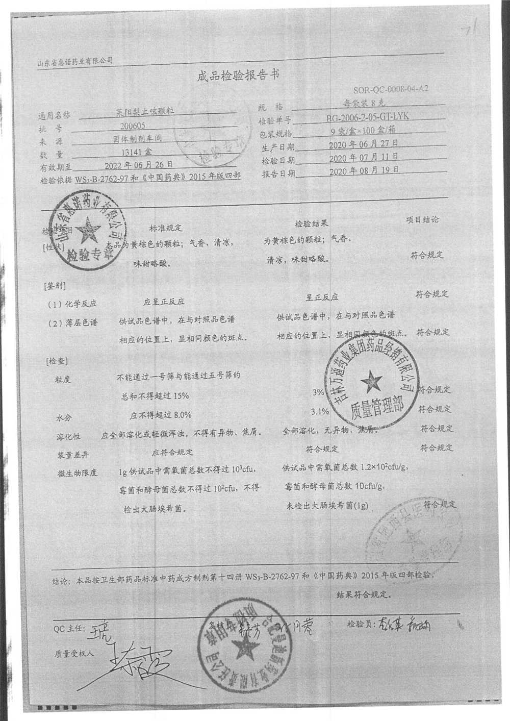 | 莱阳梨止咳颗粒 | 8g | 210801 | 查看详情 |