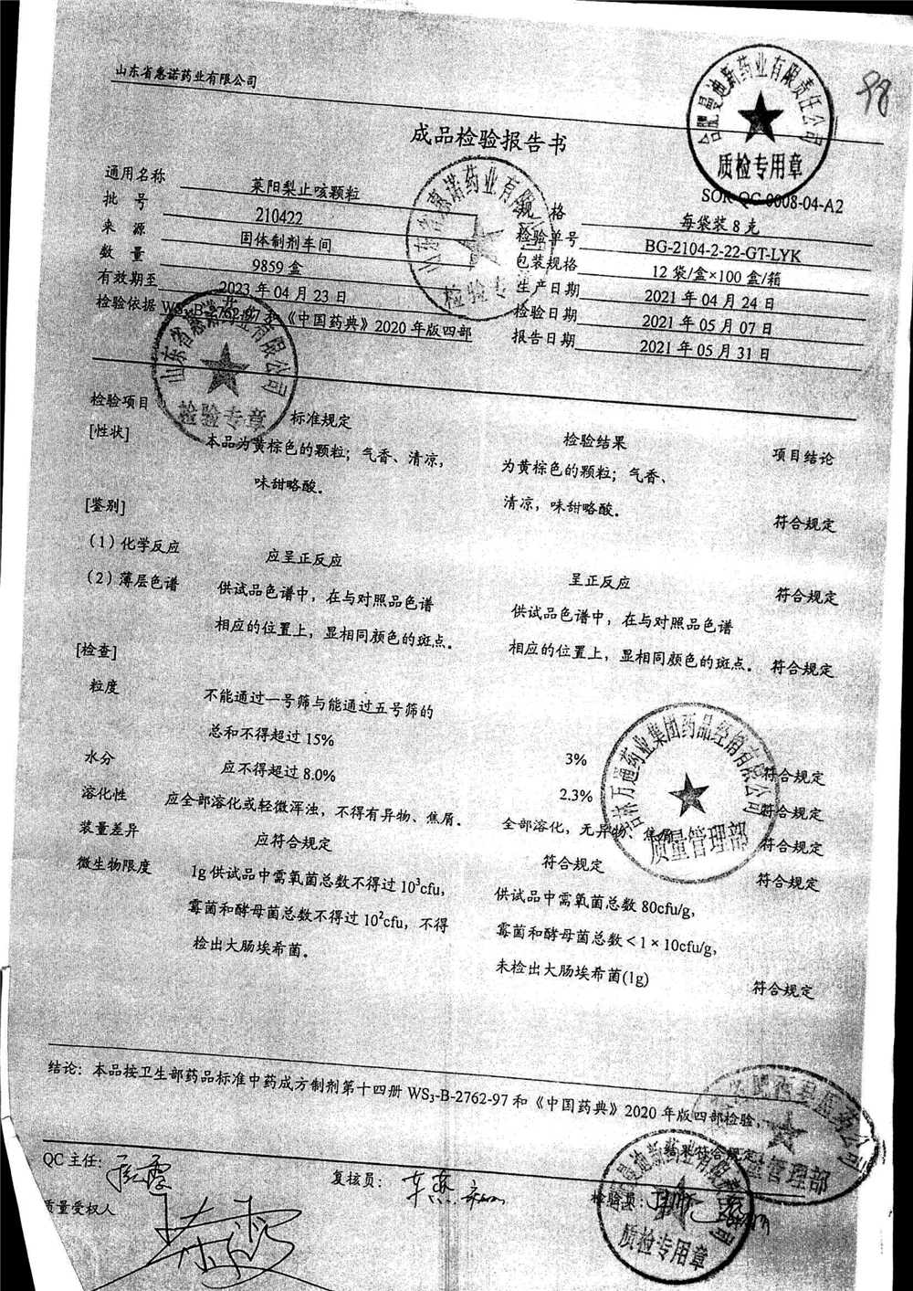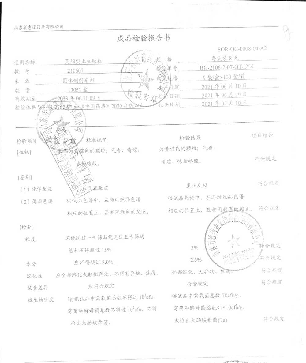 | 莱阳梨止咳颗粒 | 8g | 210607 | 查看详情 |