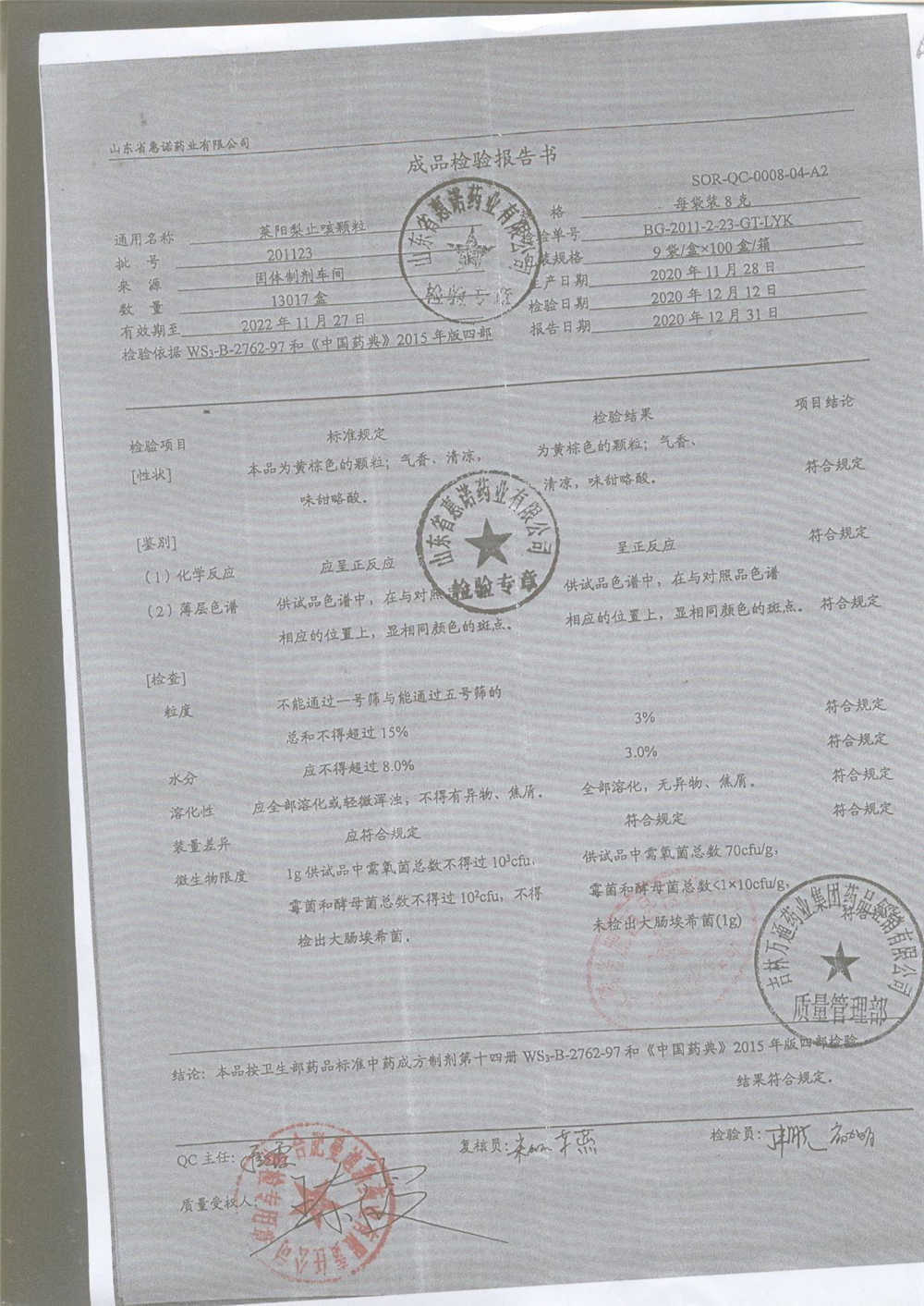 | 莱阳梨止咳颗粒 | 8g | 201123 | 查看详情 |