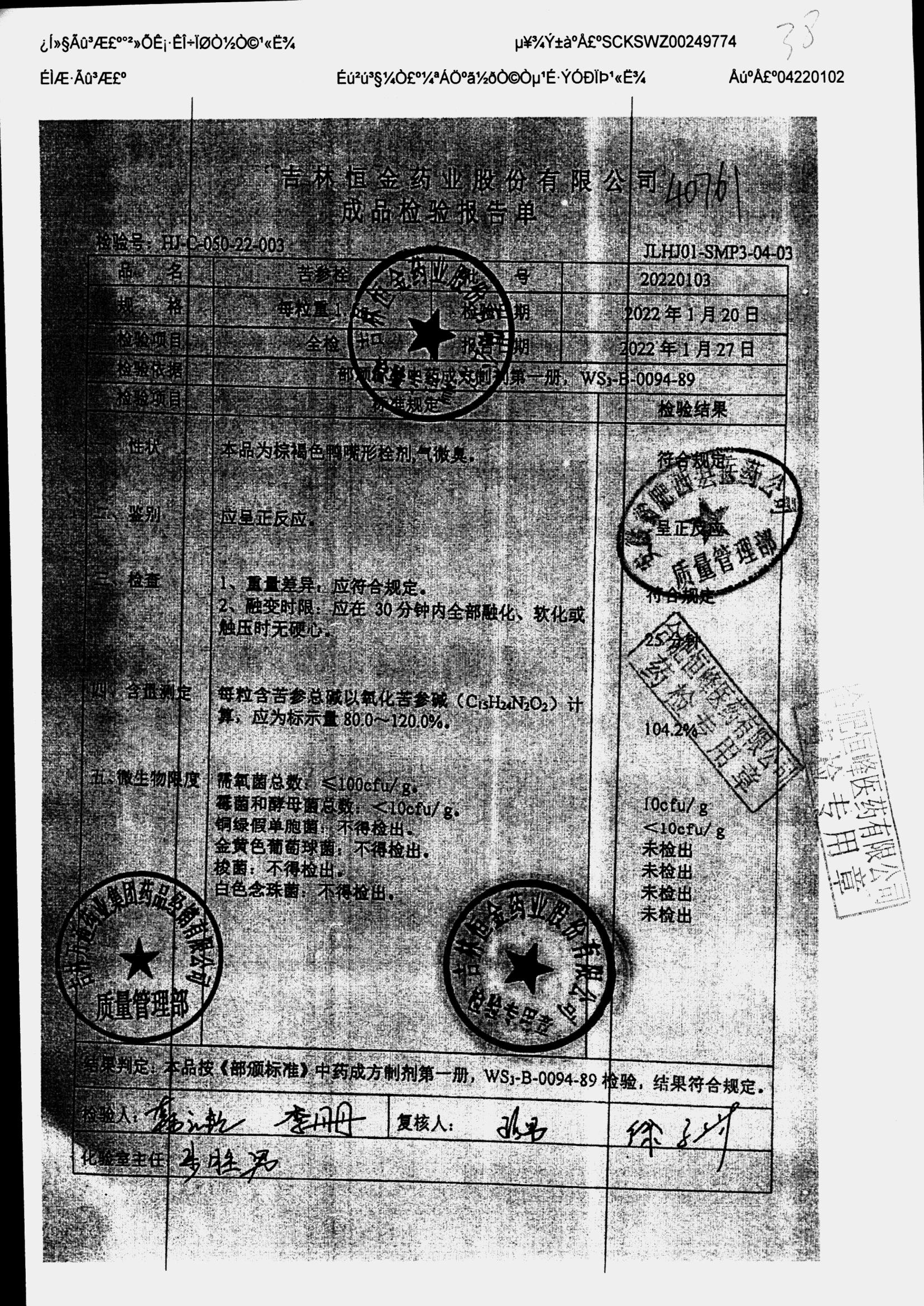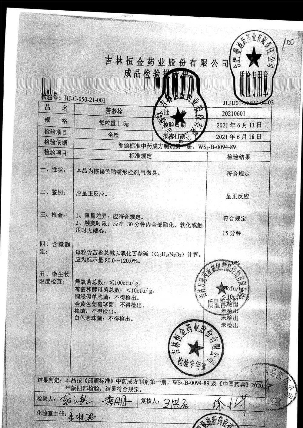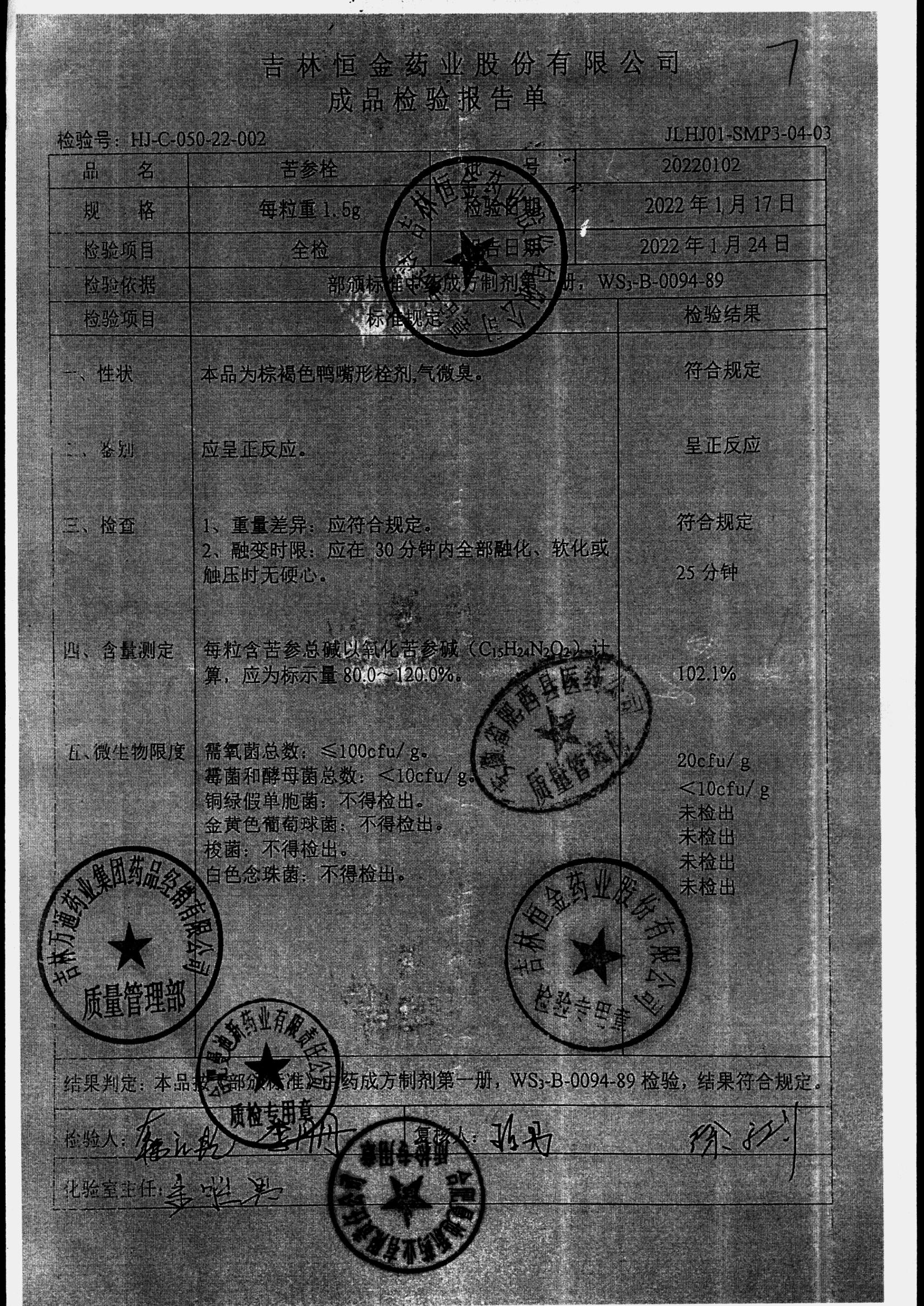 | 苦参栓 | 1.5g*6s | 20220103 | 查看详情 |