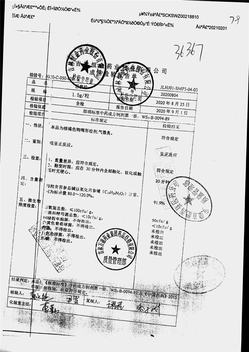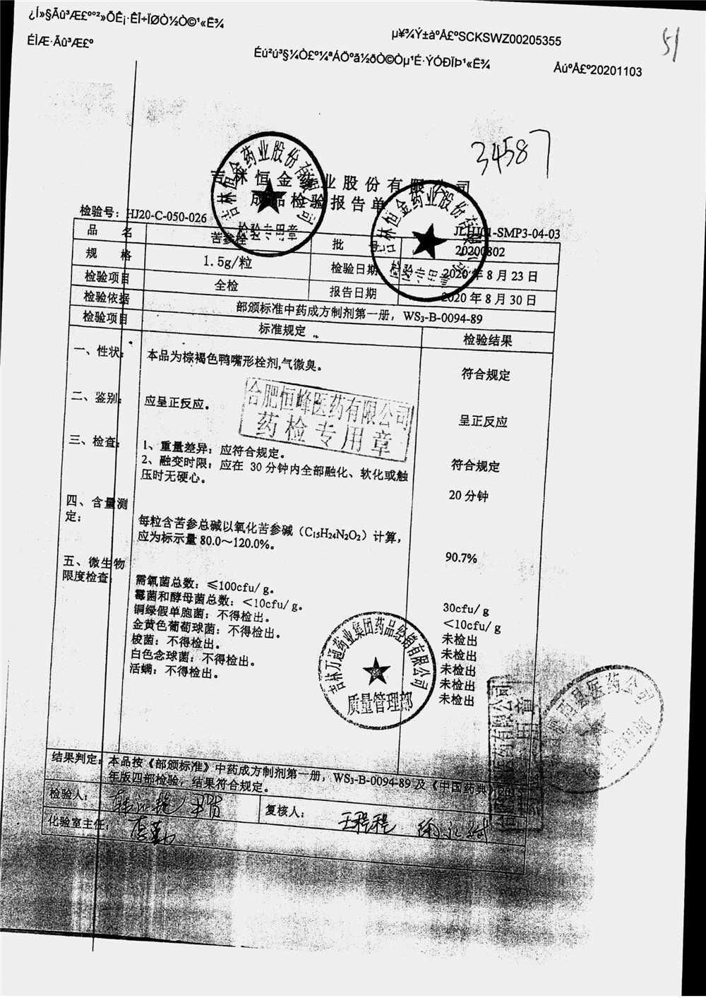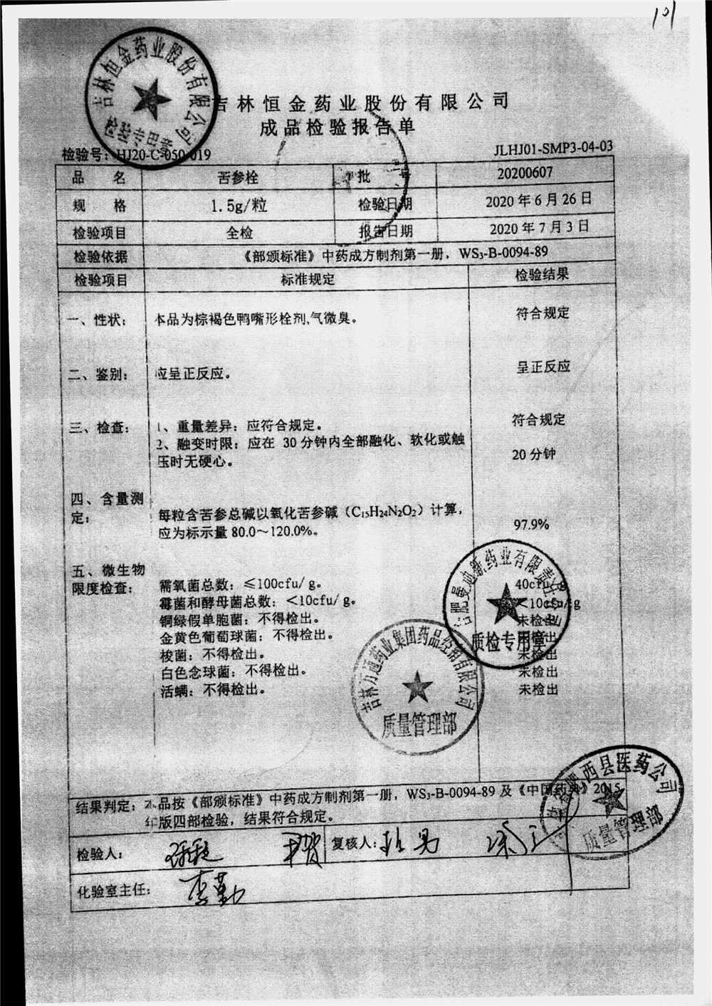 | 苦参栓 | 1.5g*6s | 20200607 | 查看详情 |