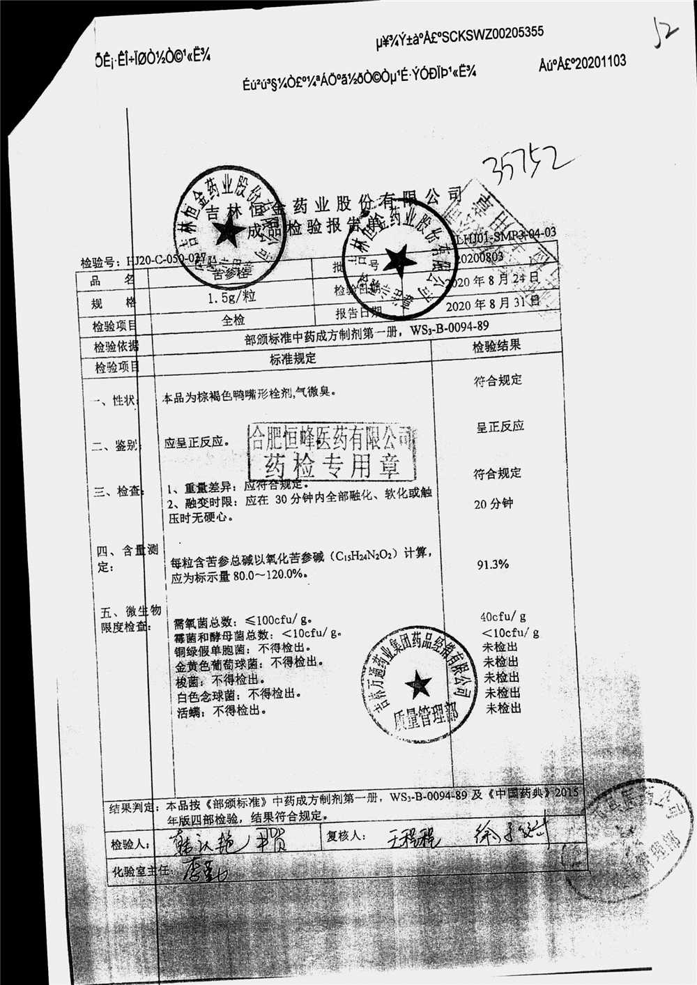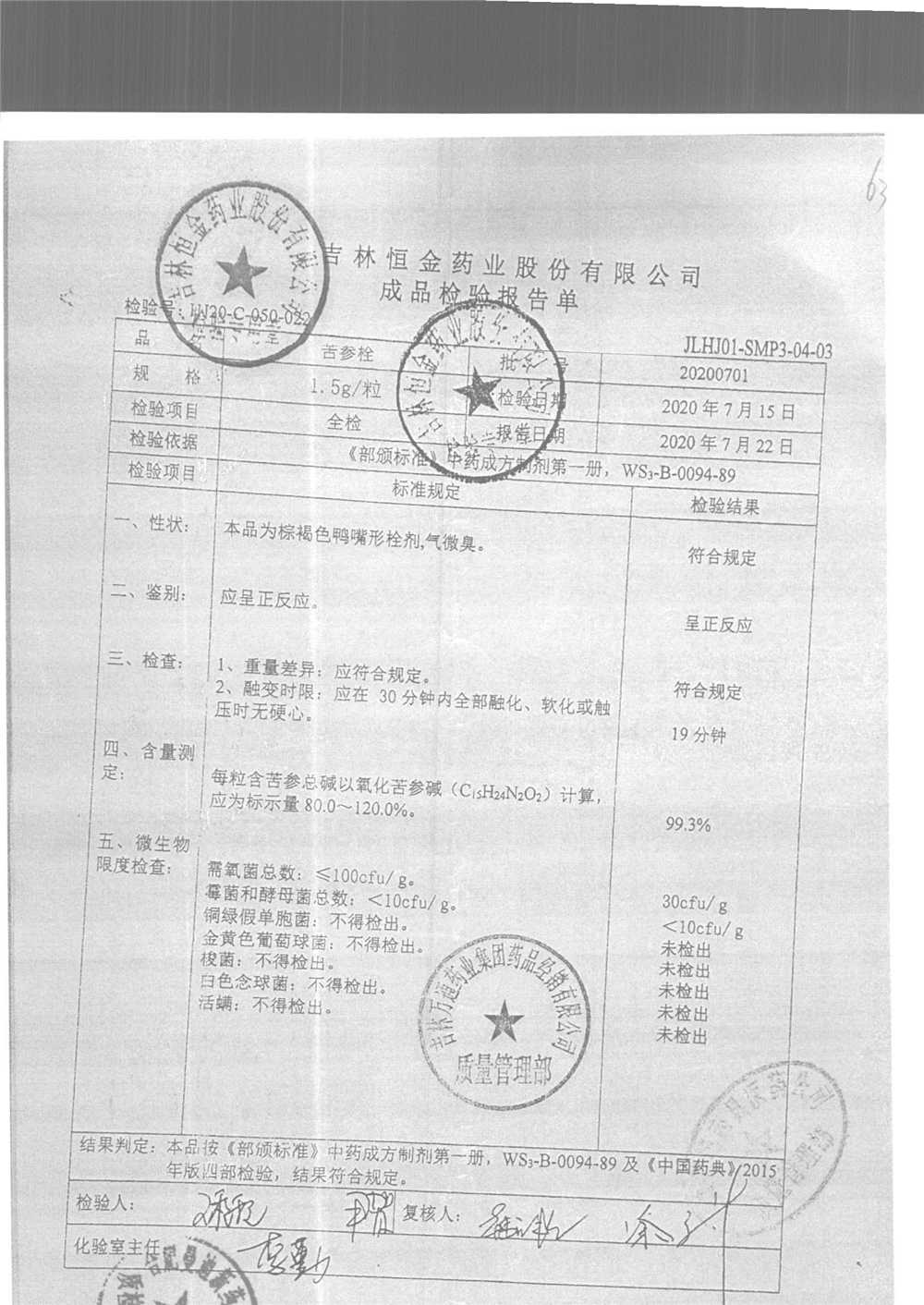 | 苦参栓 | 1.5g*6s | 20200804 | 查看详情 |