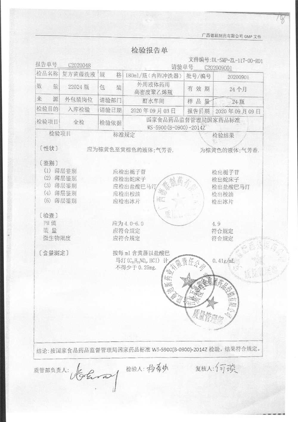 | 复方黄藤洗液 | 180ml | 20200901 | 查看详情 |