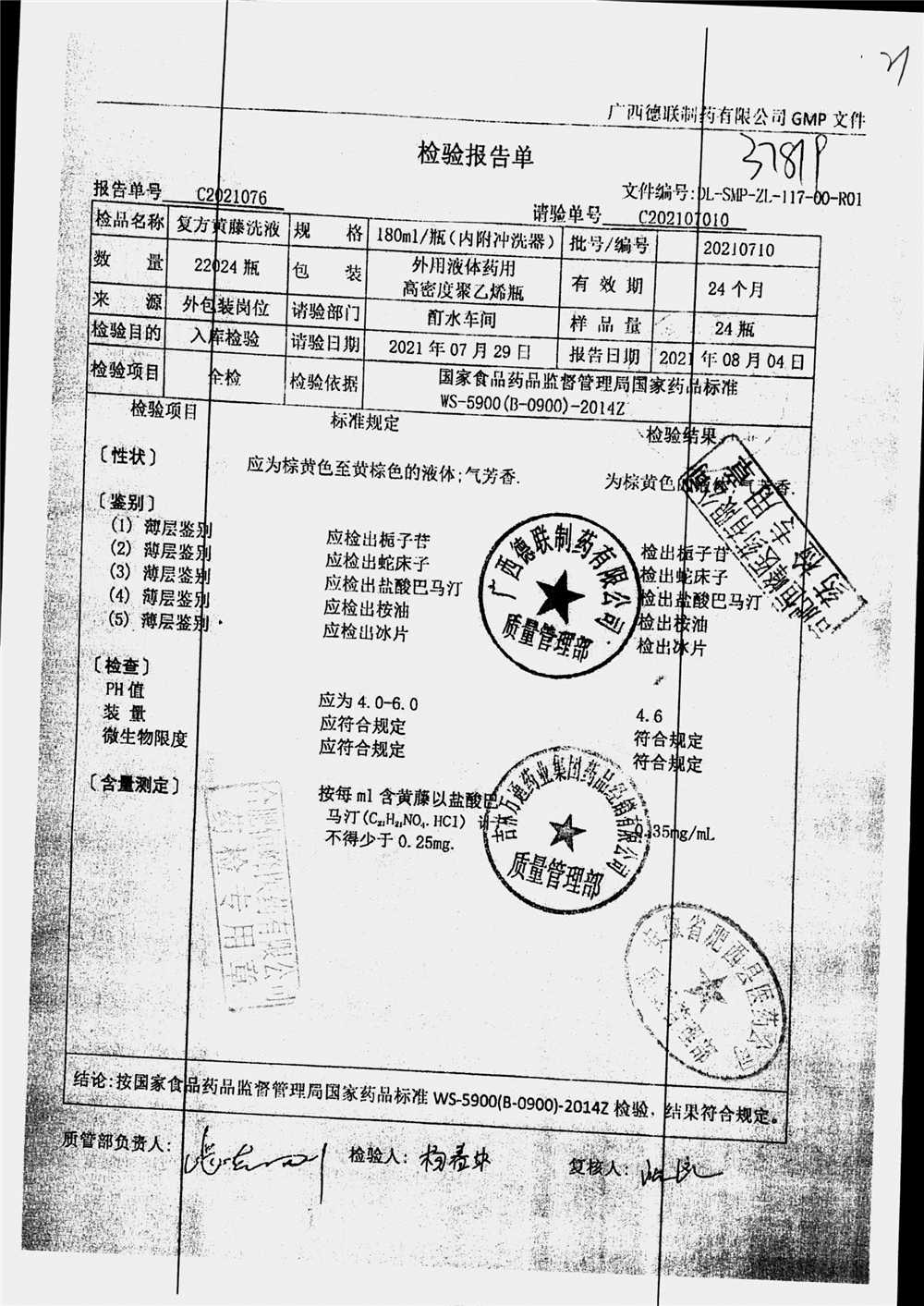 | 复方黄藤洗液 | 180ml | 20210710 | 查看详情 |