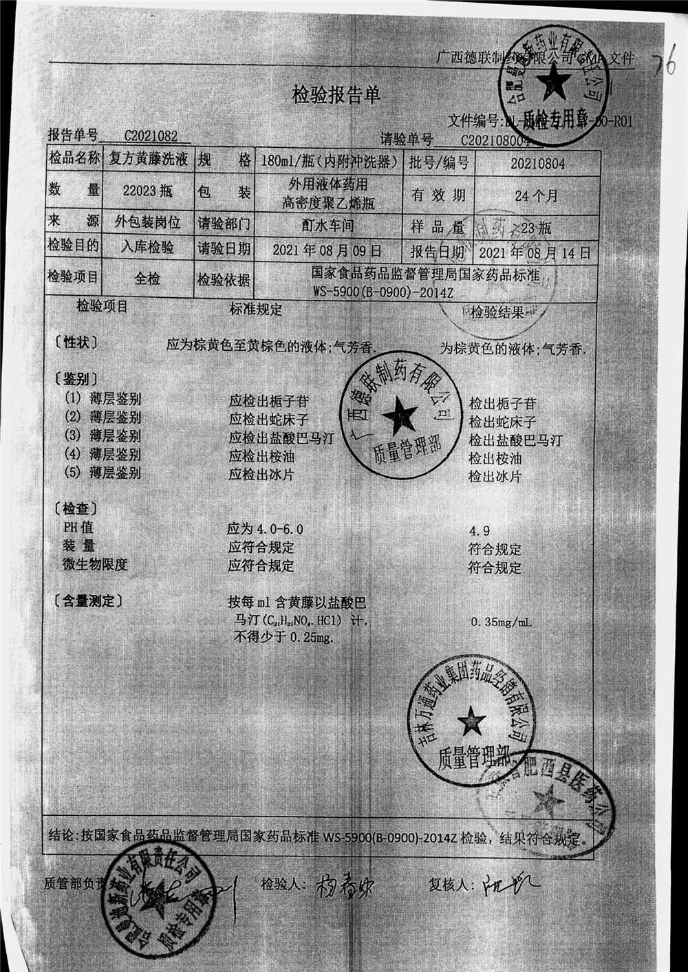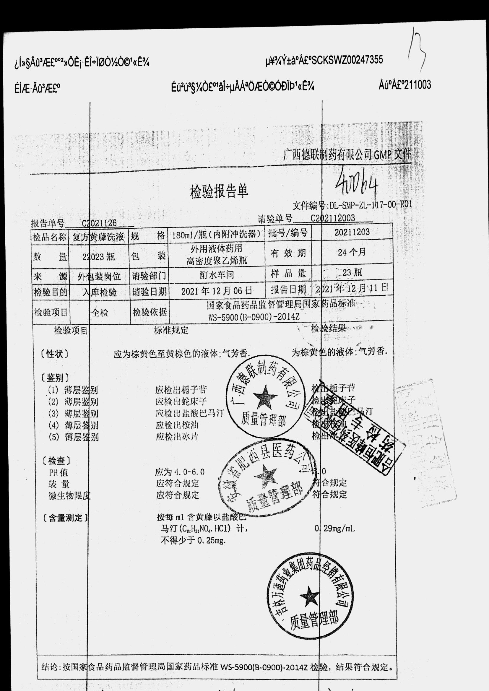 | 复方黄藤洗液 | 180ml | 20211209 | 查看详情 |