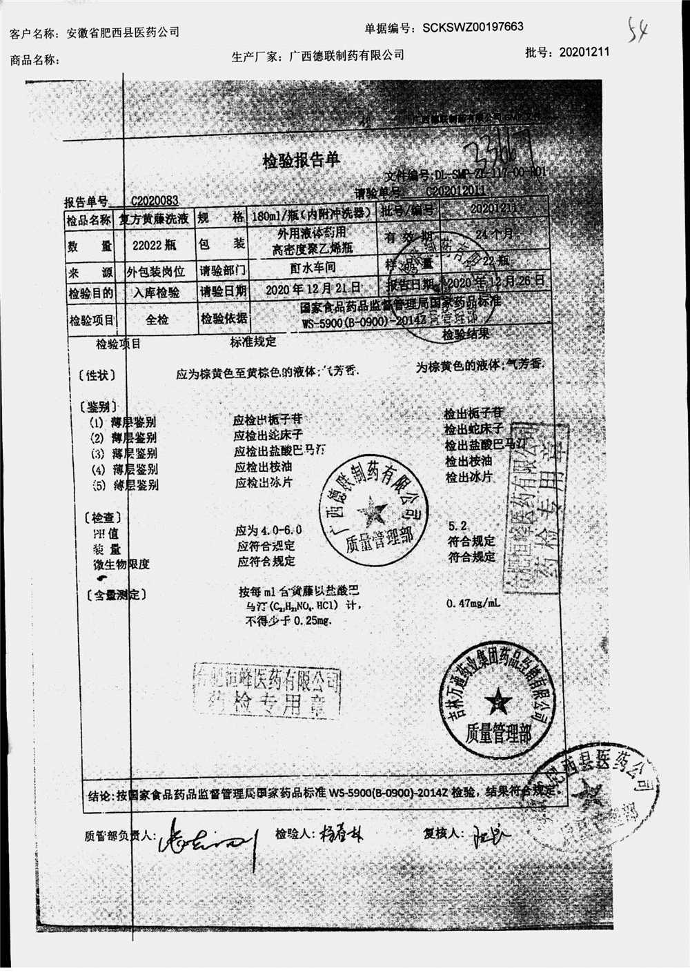 | 复方黄藤洗液 | 180ml | 20201205 | 查看详情 |