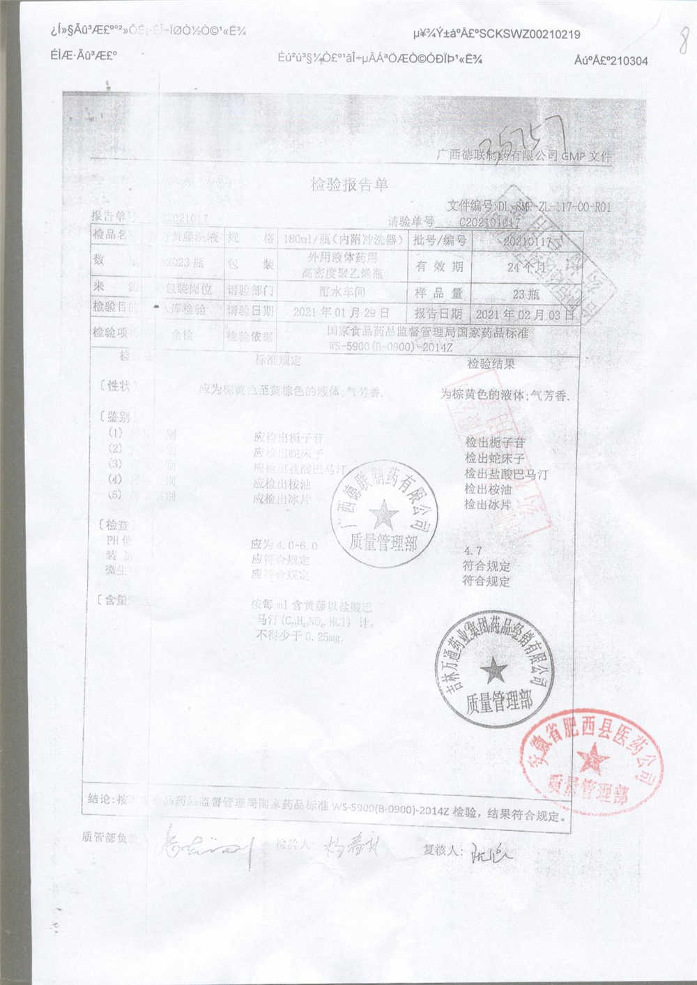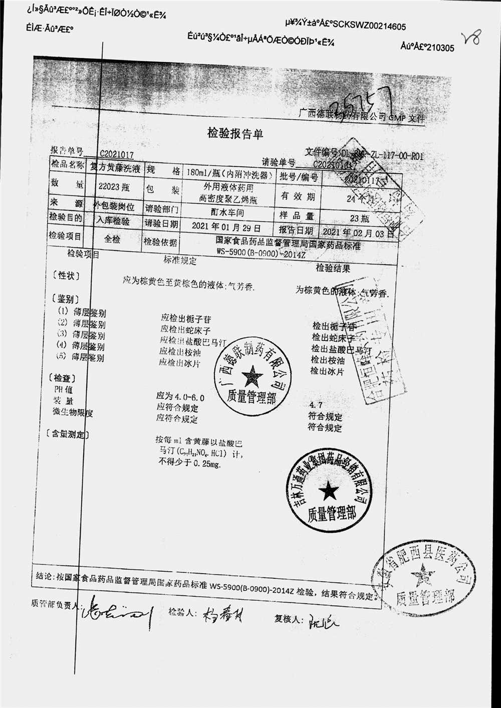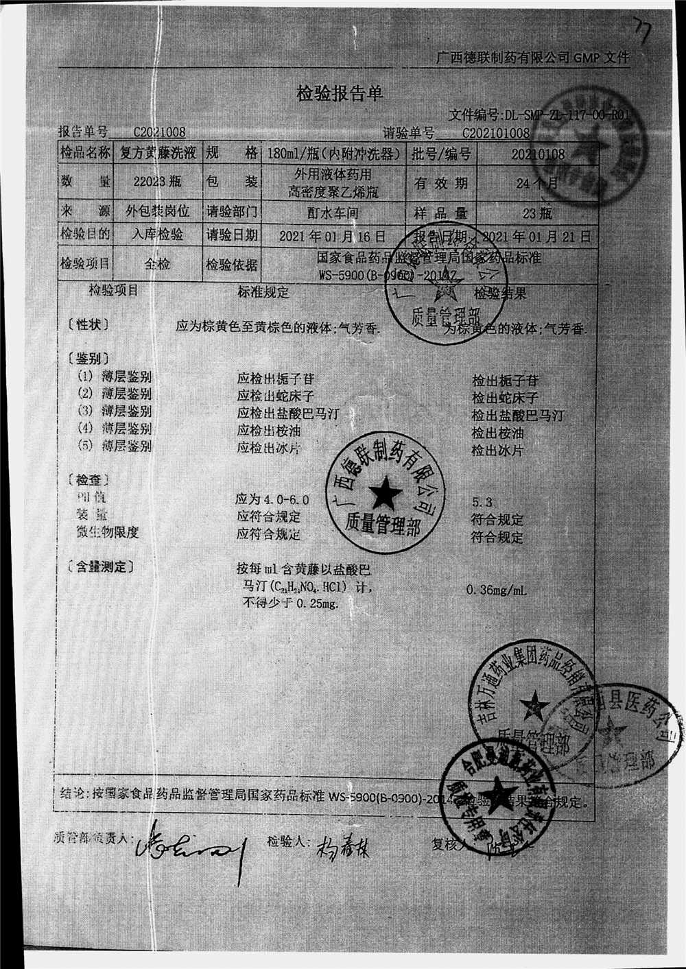 | 复方黄藤洗液 | 180ml | 20210117 | 查看详情 |