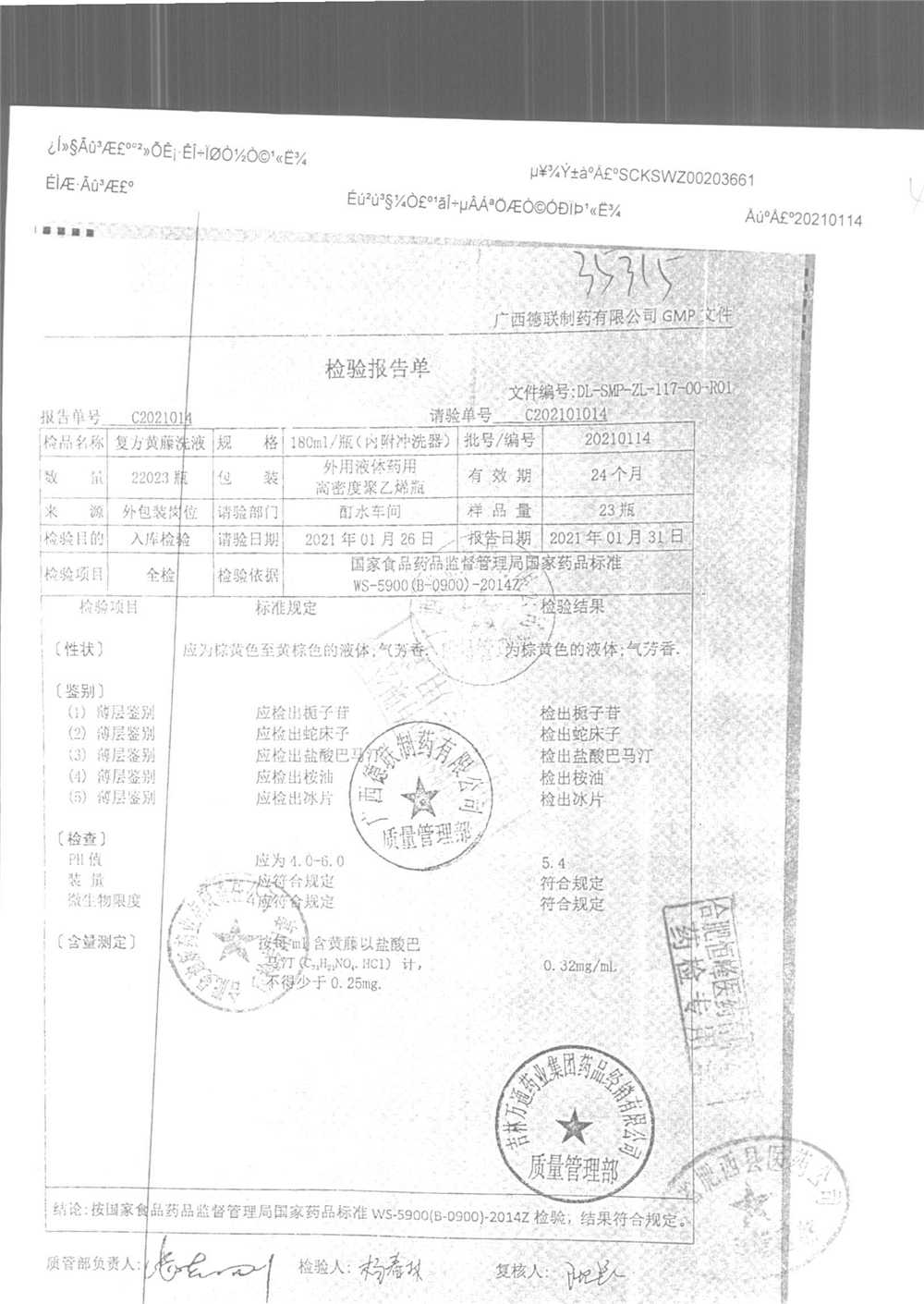 | 复方黄藤洗液 | 180ml | 20210114 | 查看详情 |