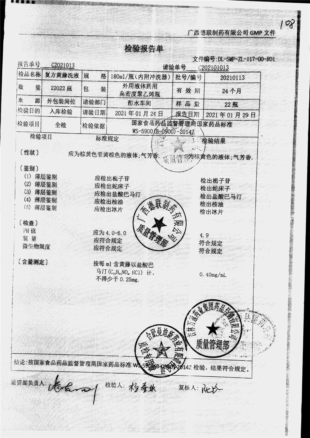 | 复方黄藤洗液 | 180ml | 20210108 | 查看详情 |