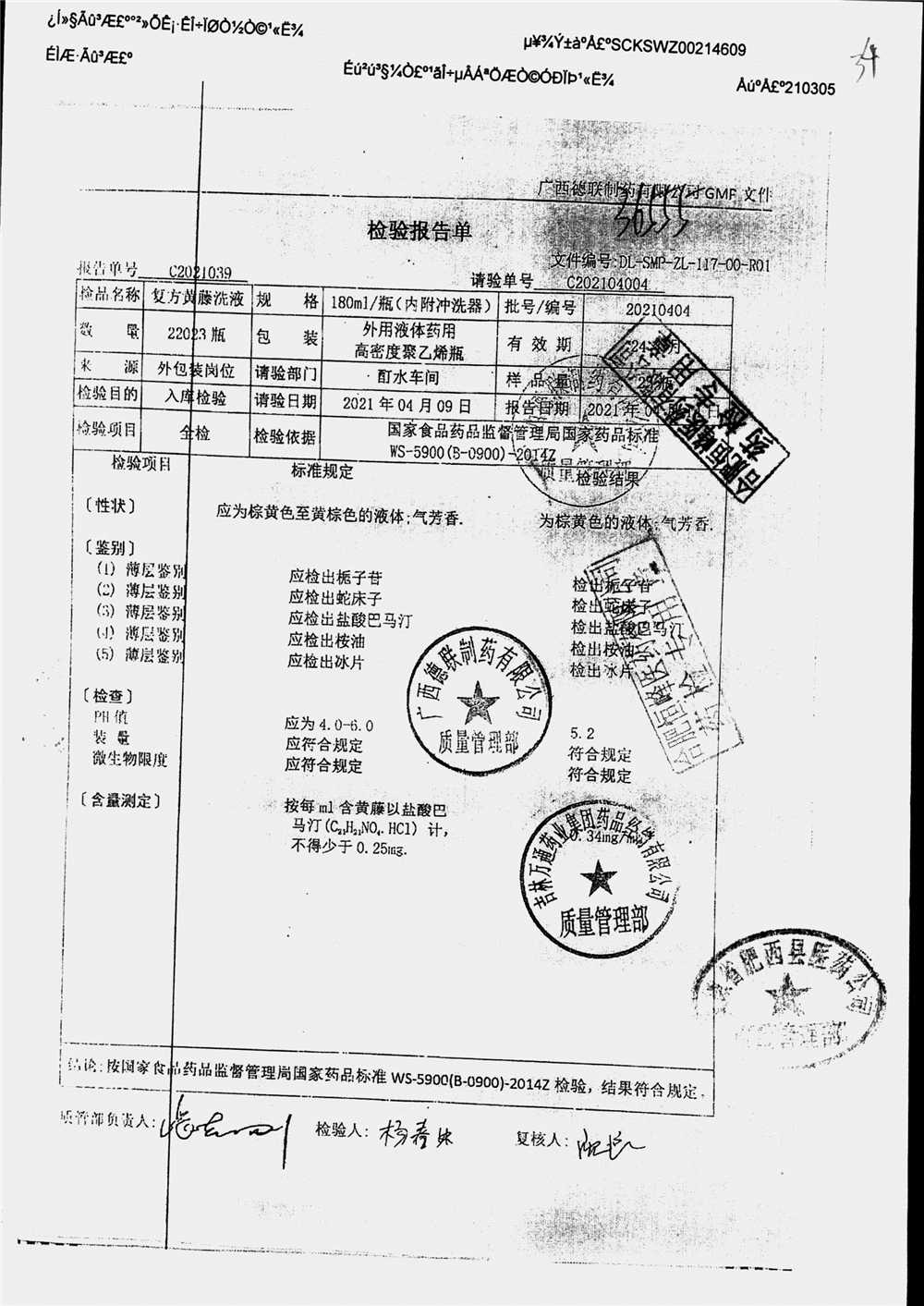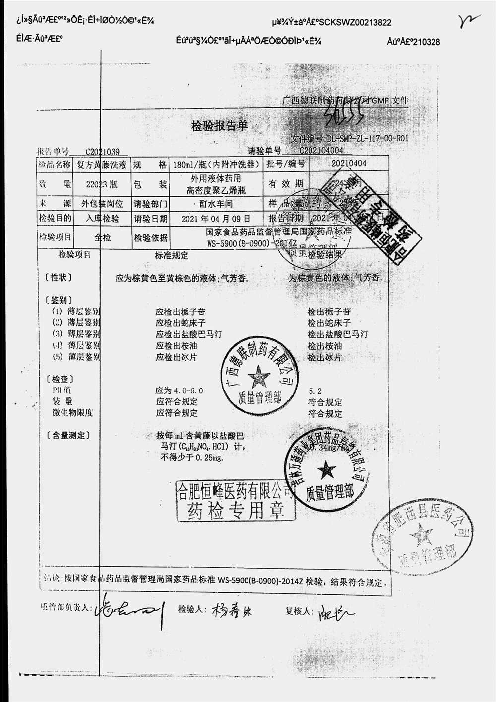 | 复方黄藤洗液 | 180ml | 20210404 | 查看详情 |