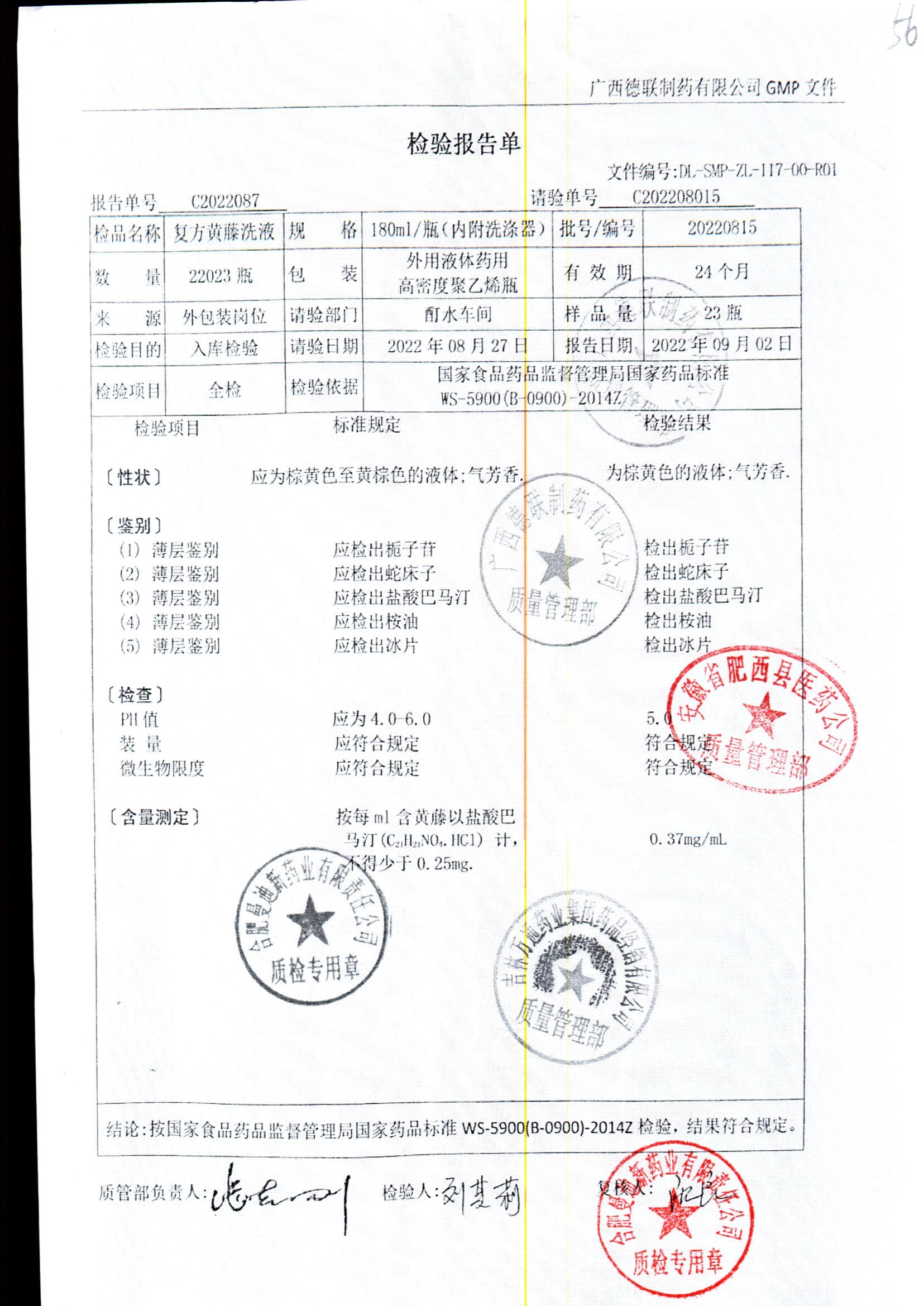 | 复方黄藤洗液 | 180ml | 20220815 | 查看详情 |