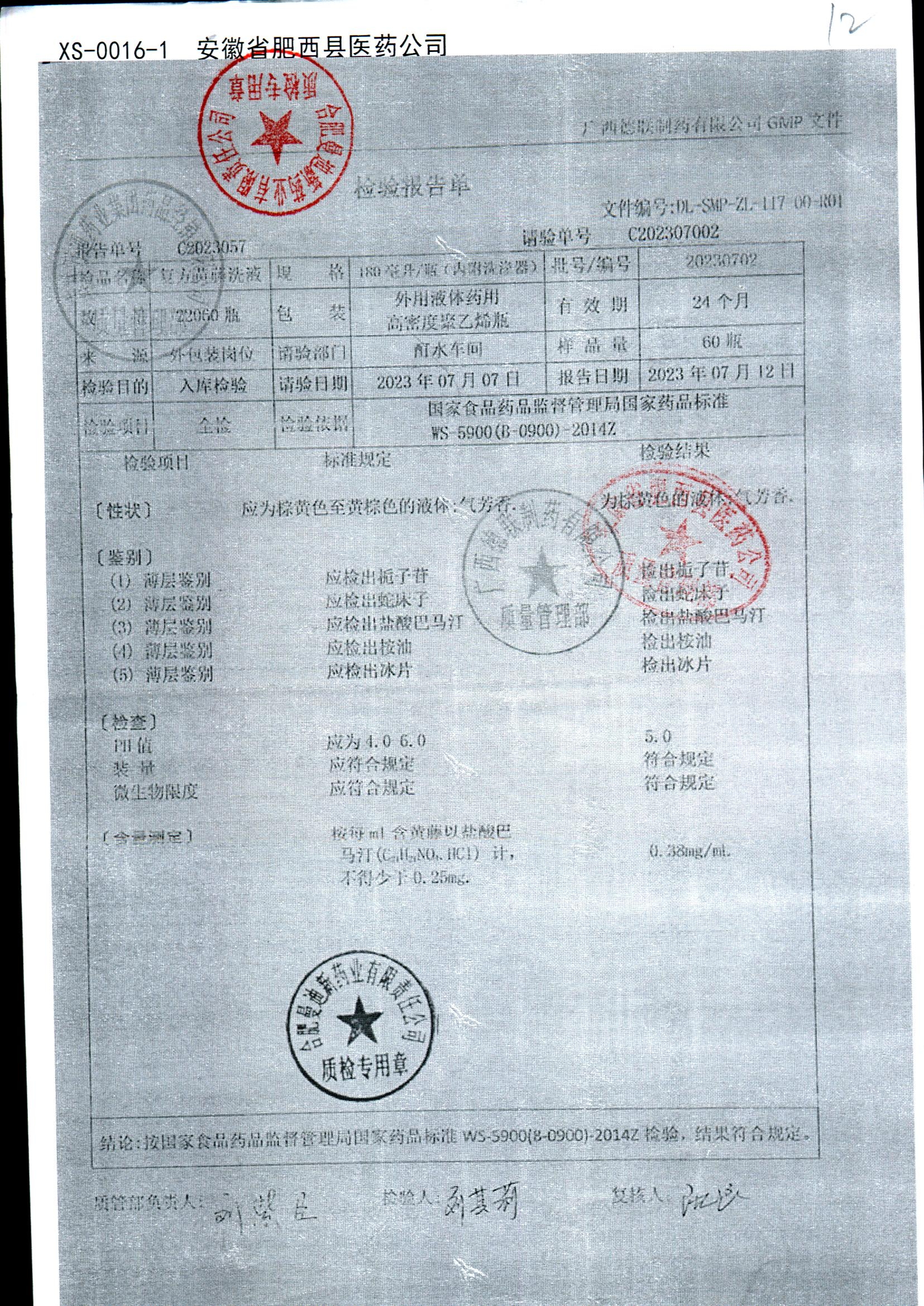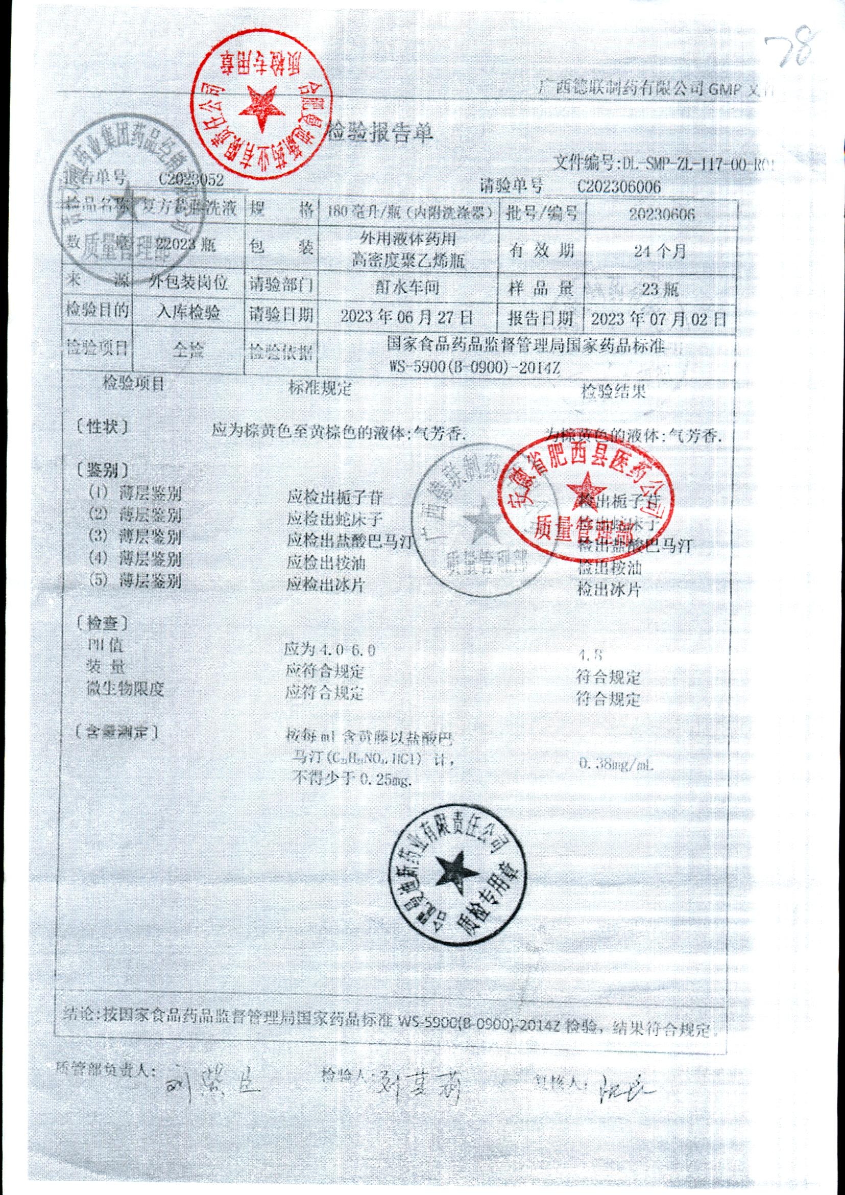 | 复方黄藤洗液 | 180ml | 20230702 | 查看详情 |
