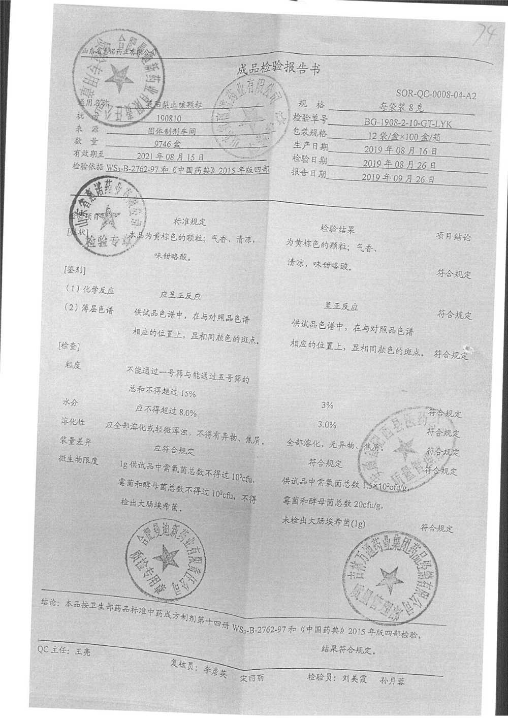 | 名称 | 规格 | 批号 | 药检报告 |