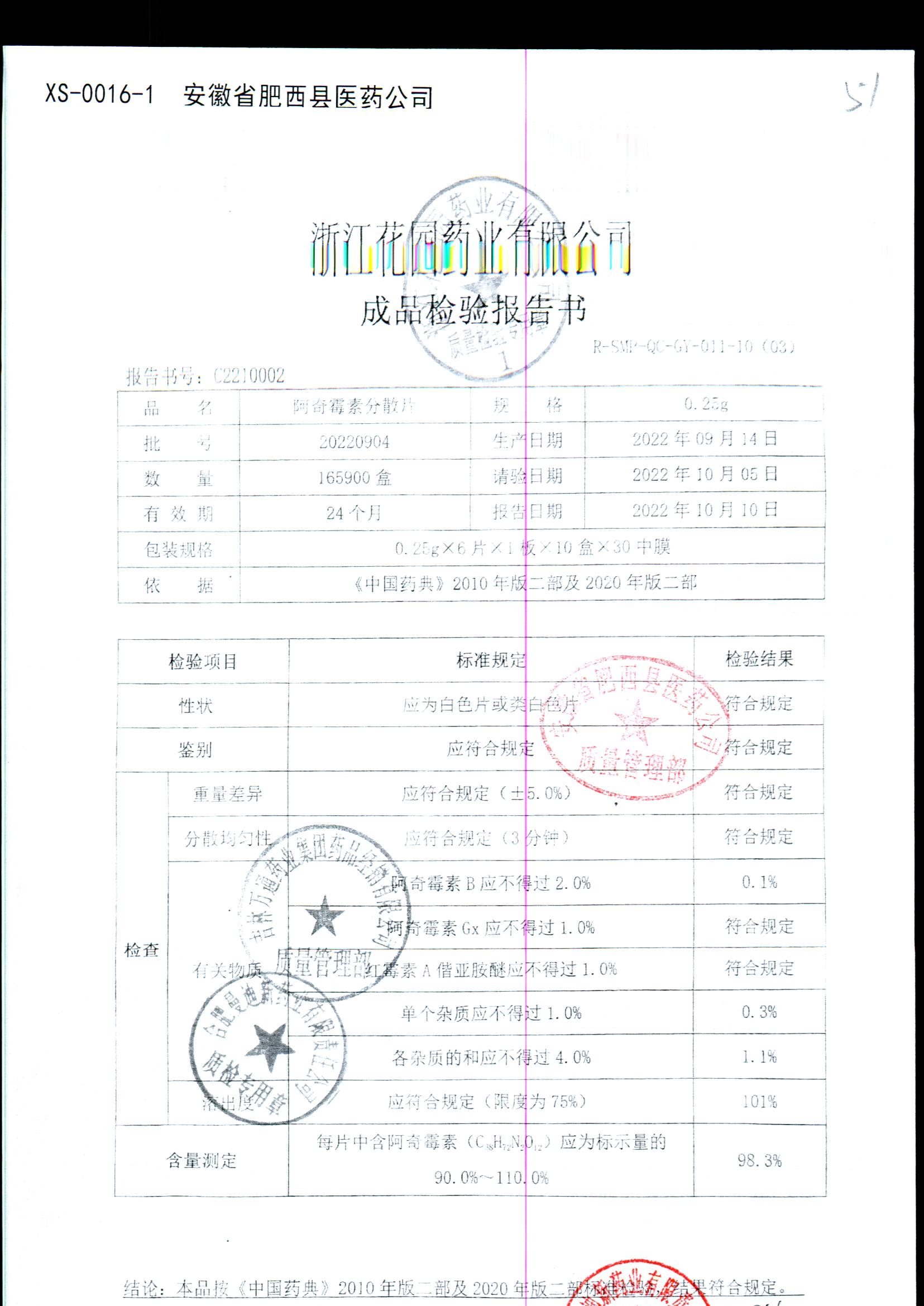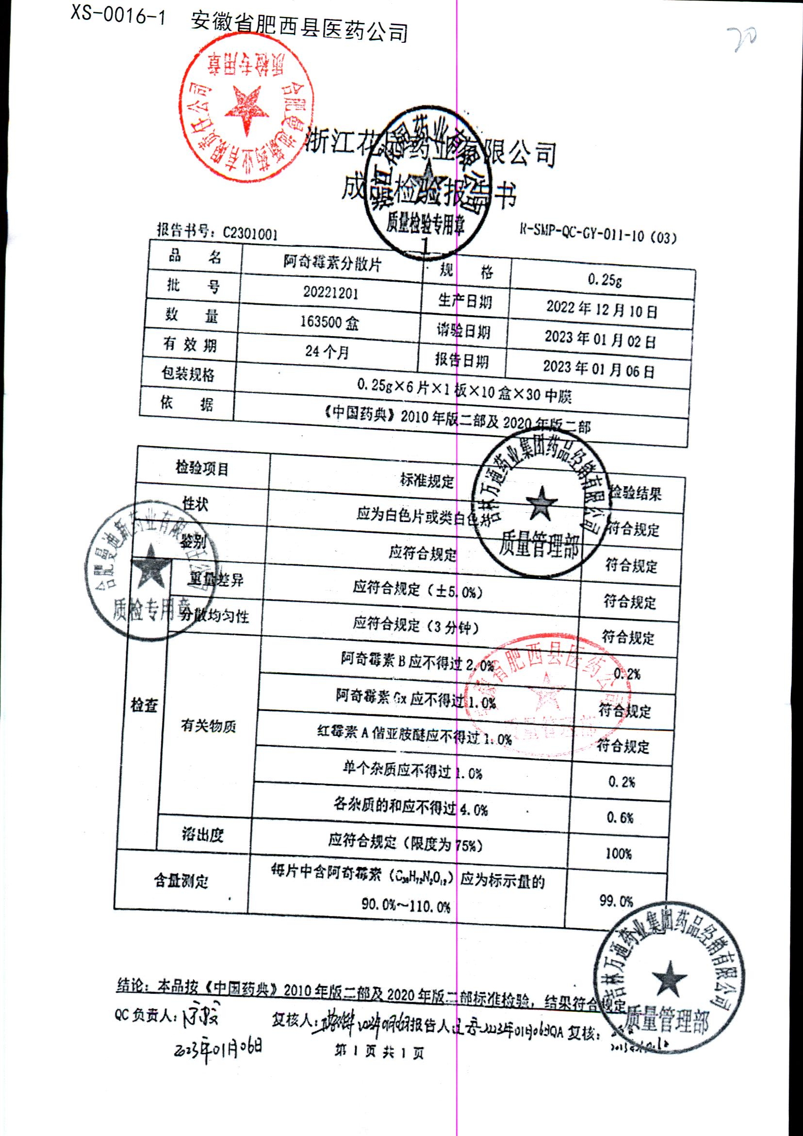 | 阿奇霉素分散片 | 0.25g*6片*1板 | 20221201 | 查看详情 |