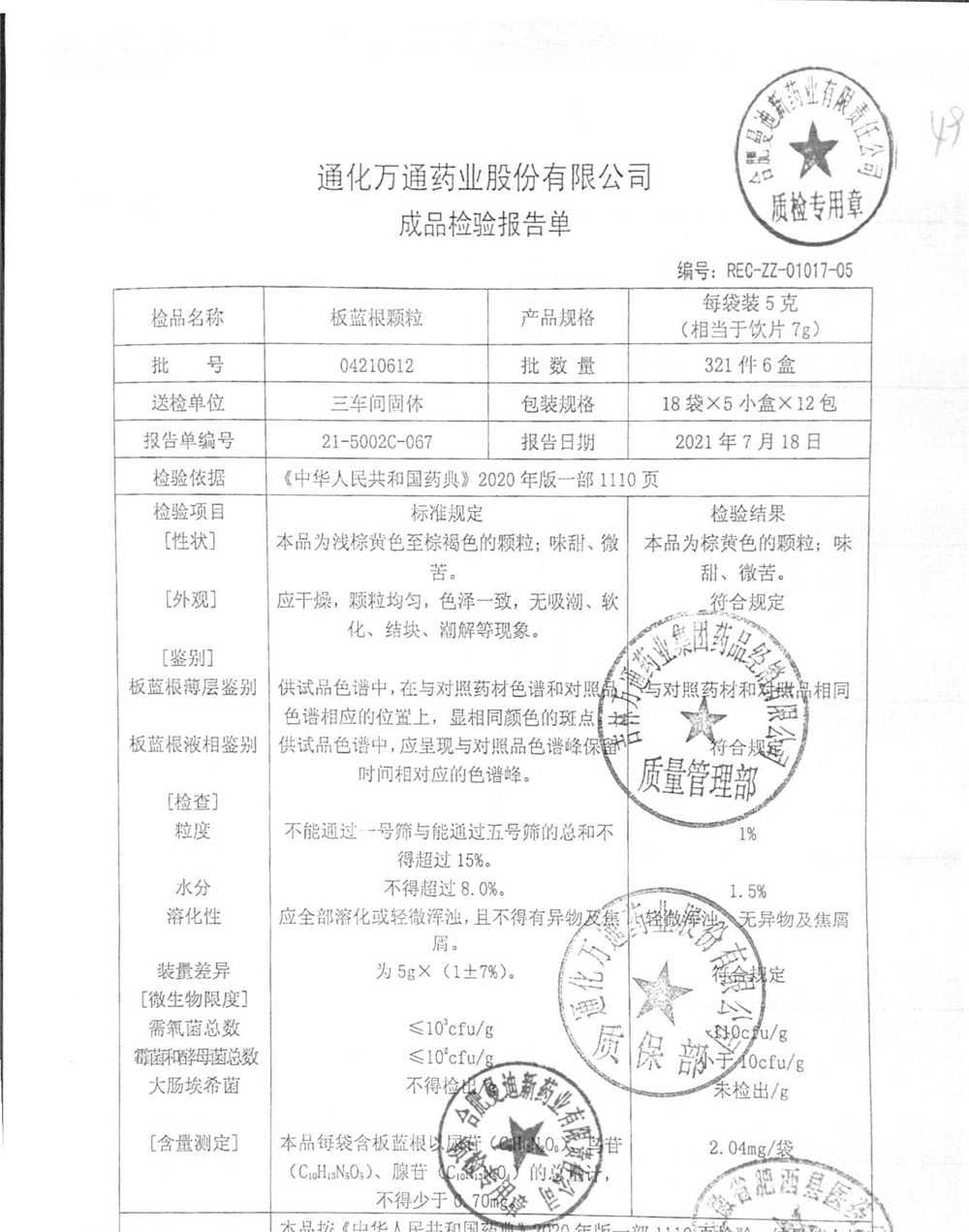 | 板蓝根颗粒 | 5g*18袋 | 04210711 | 查看详情 |
