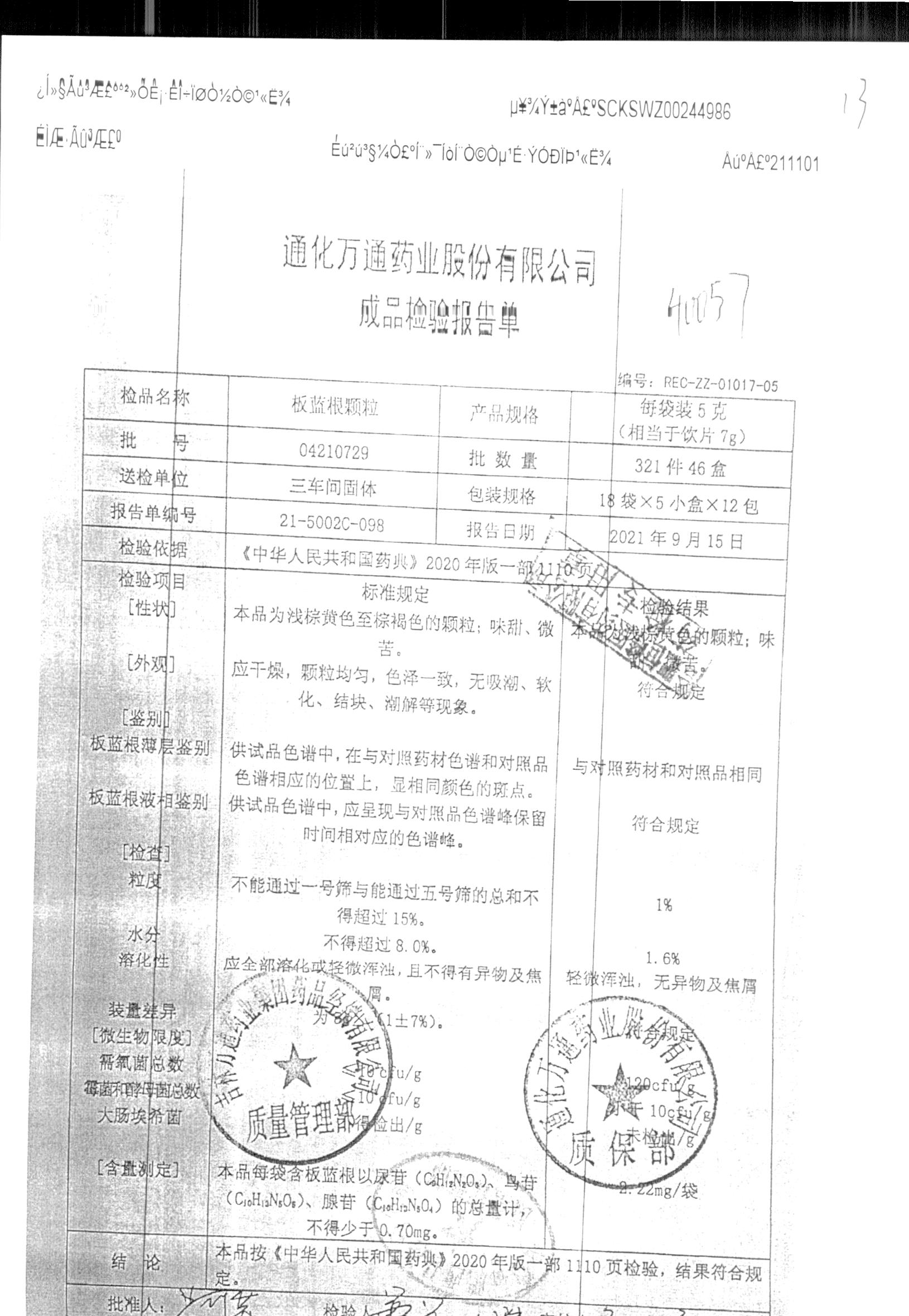 | 板蓝根颗粒 | 5g*18袋 | 04210729 | 查看详情 |