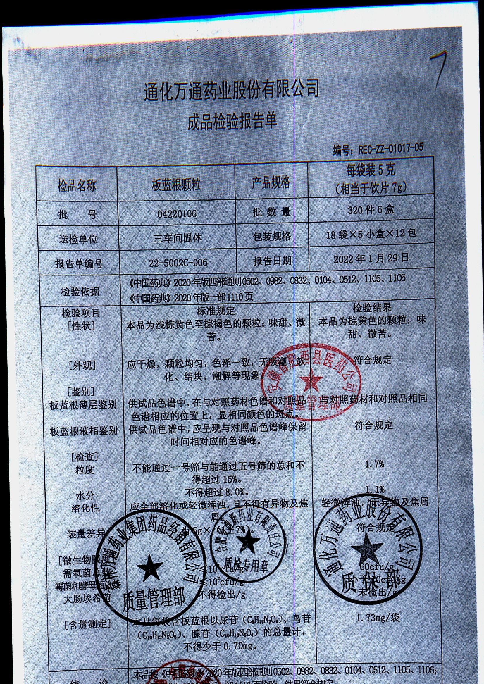 | 板蓝根颗粒 | 5g*18袋 | 04220106 | 查看详情 |